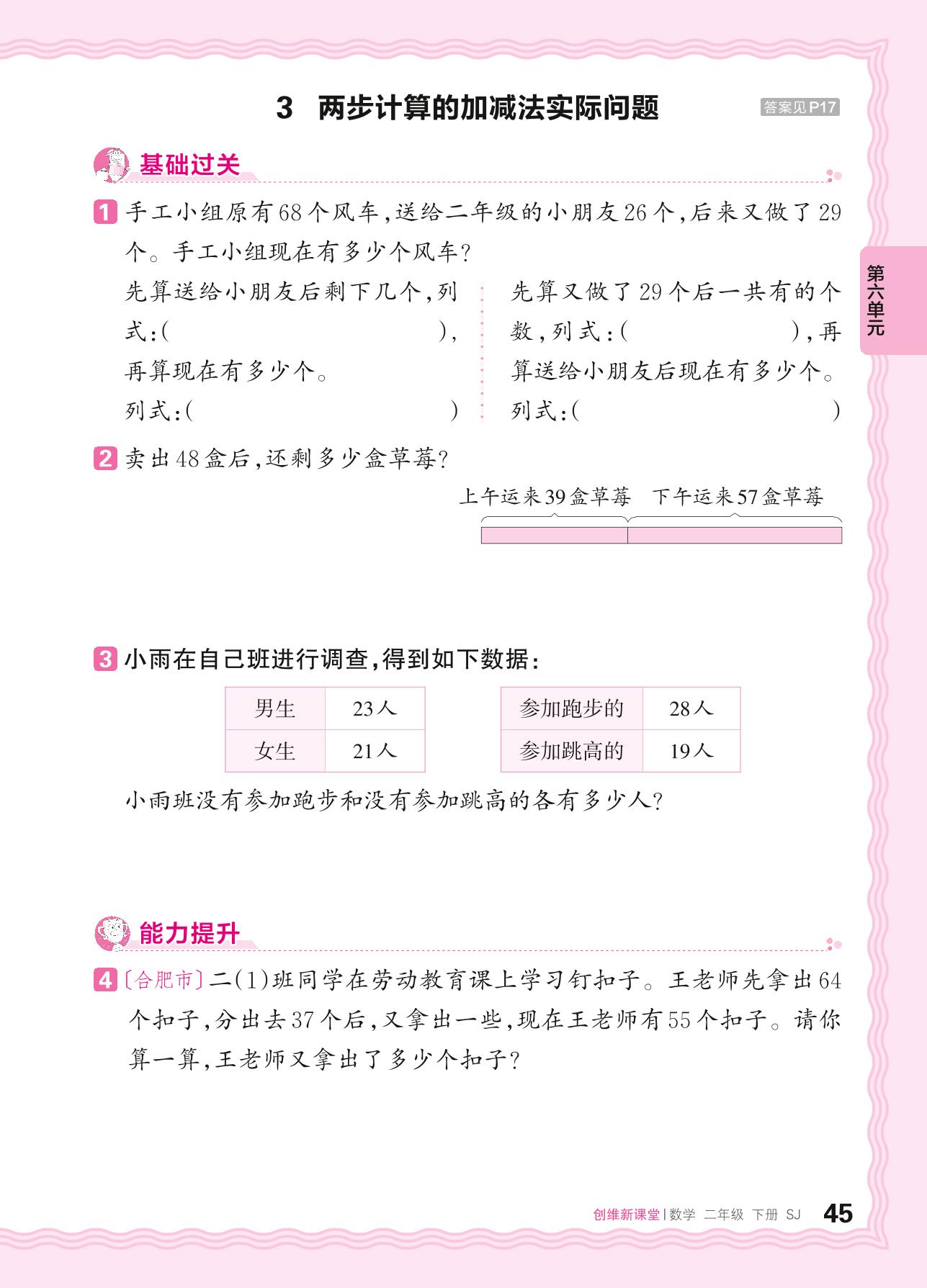 2024春下册二年级数学苏教版 第六单元 两、三位数的加法和减法——3. 两步计算的加减法实际问题_R240123101746647