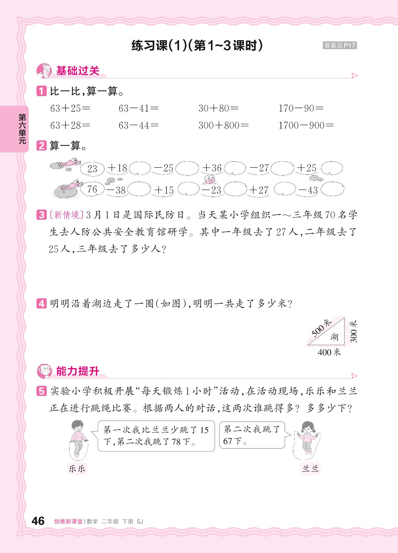 2024春下册二年级数学苏教版 第六单元 两、三位数的加法和减法——两位数加、减两位数的口算 两步计算的加减法实际问题练习课(1)