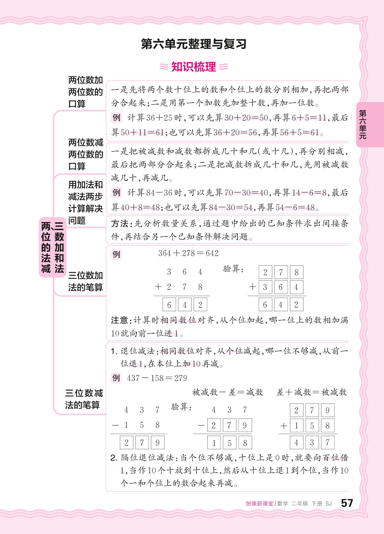 2024春下册二年级数学苏教版 第六单元整理与复习