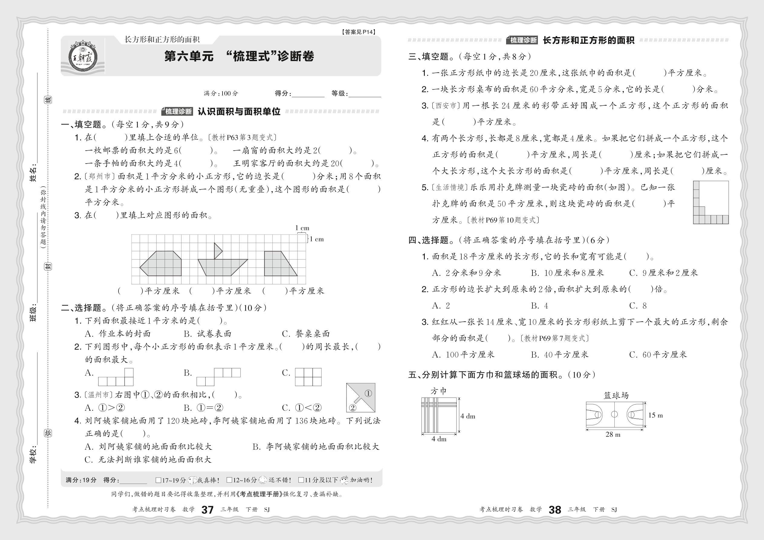 2024春下册三年级数学苏教版 第六单元 “梳理式“诊断卷