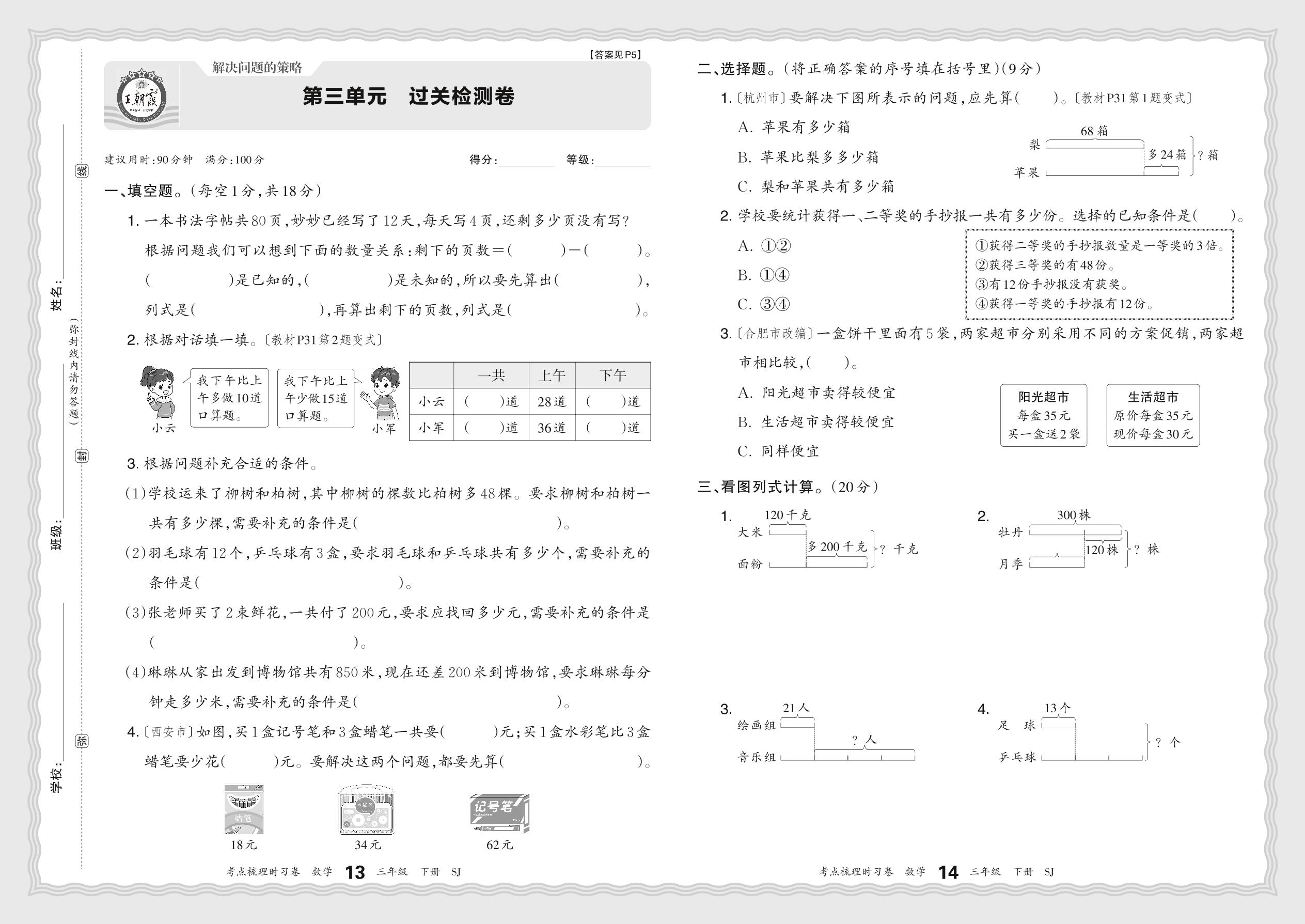 2024春下册三年级数学苏教版 第三单元 过关检测卷