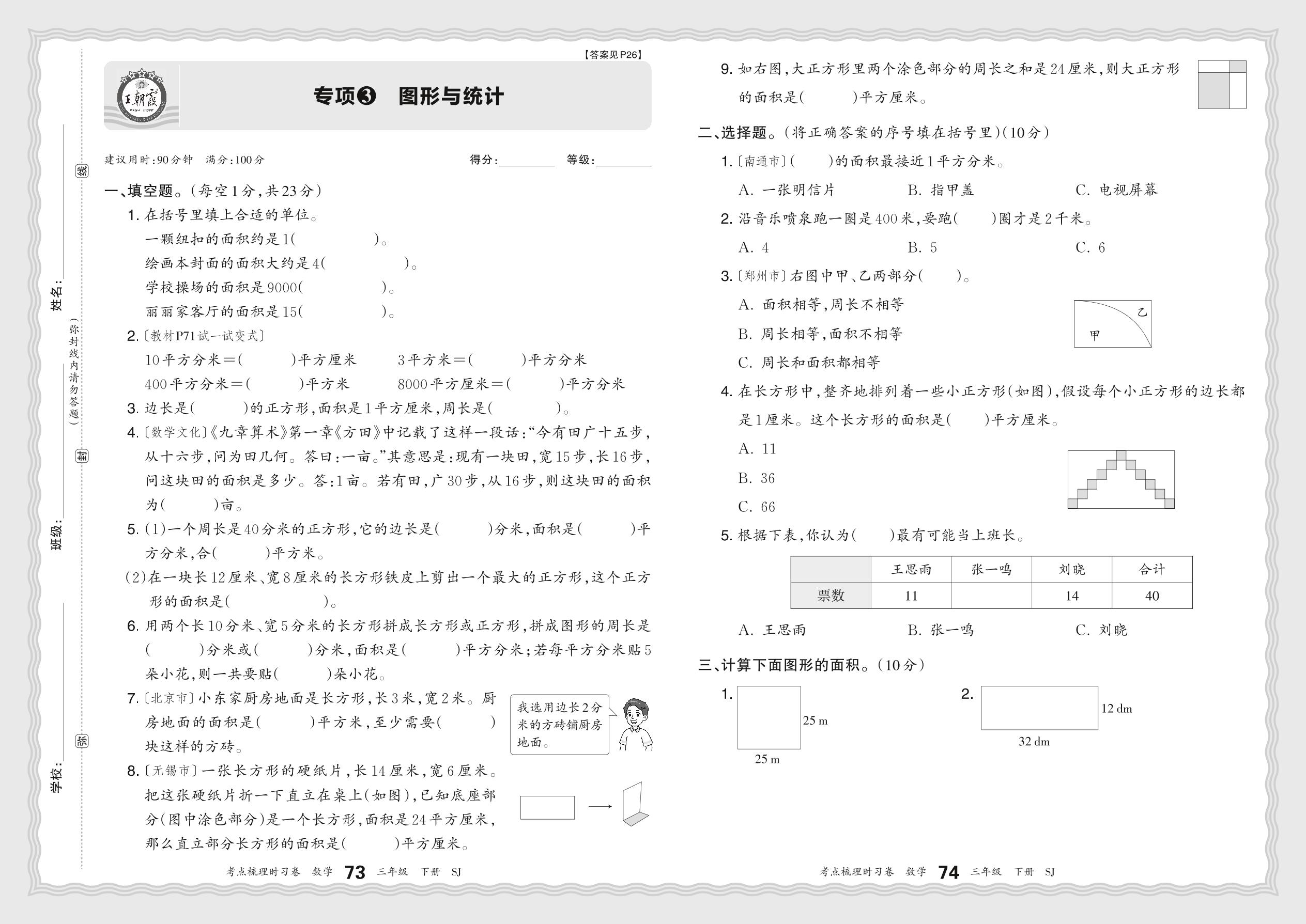 2024春下册三年级数学苏教版 期末专项卷KD版·图形与统计【3】