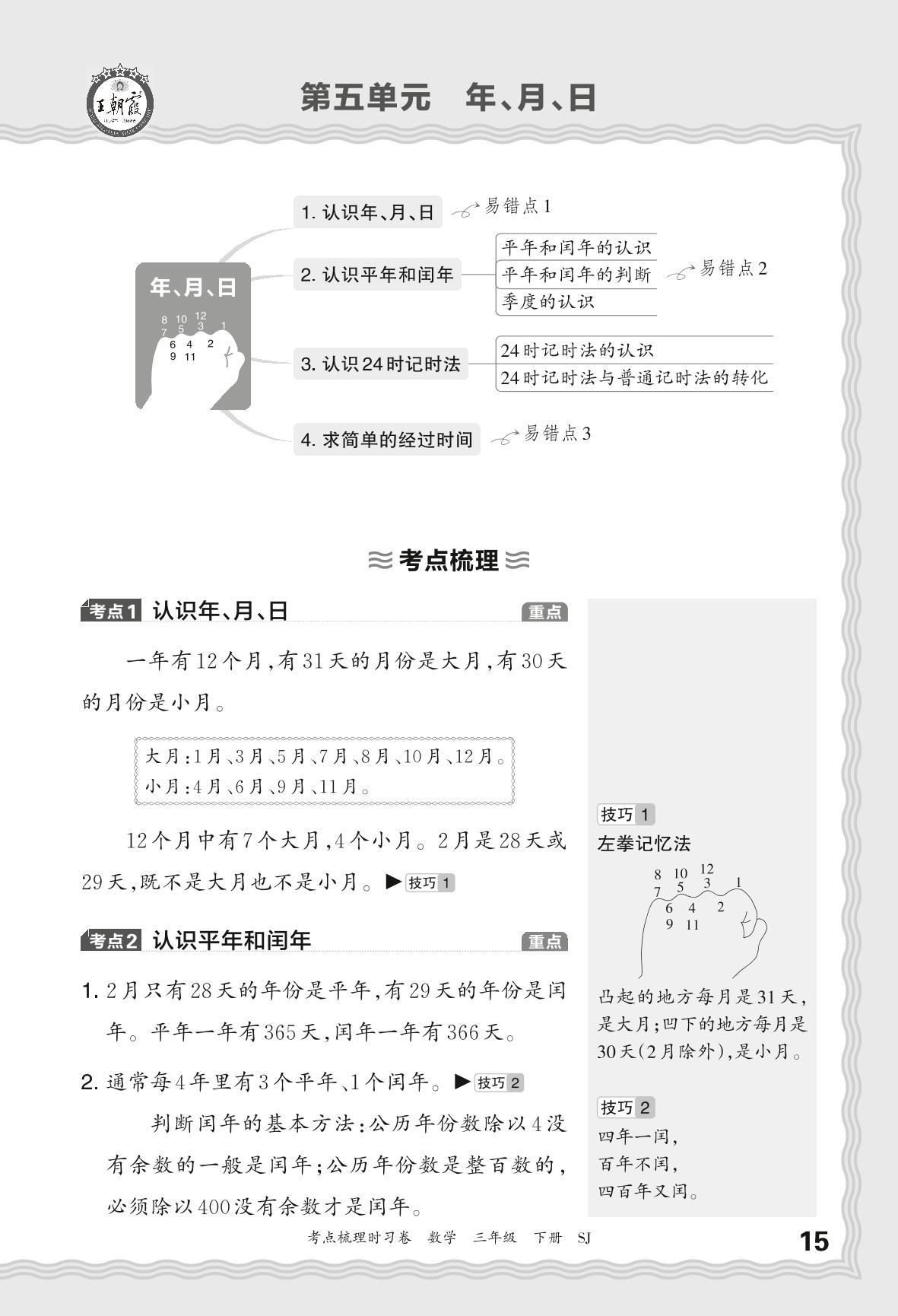 2024春下册三年级数学苏教版 考点梳理手册——第五单元 年、月、日