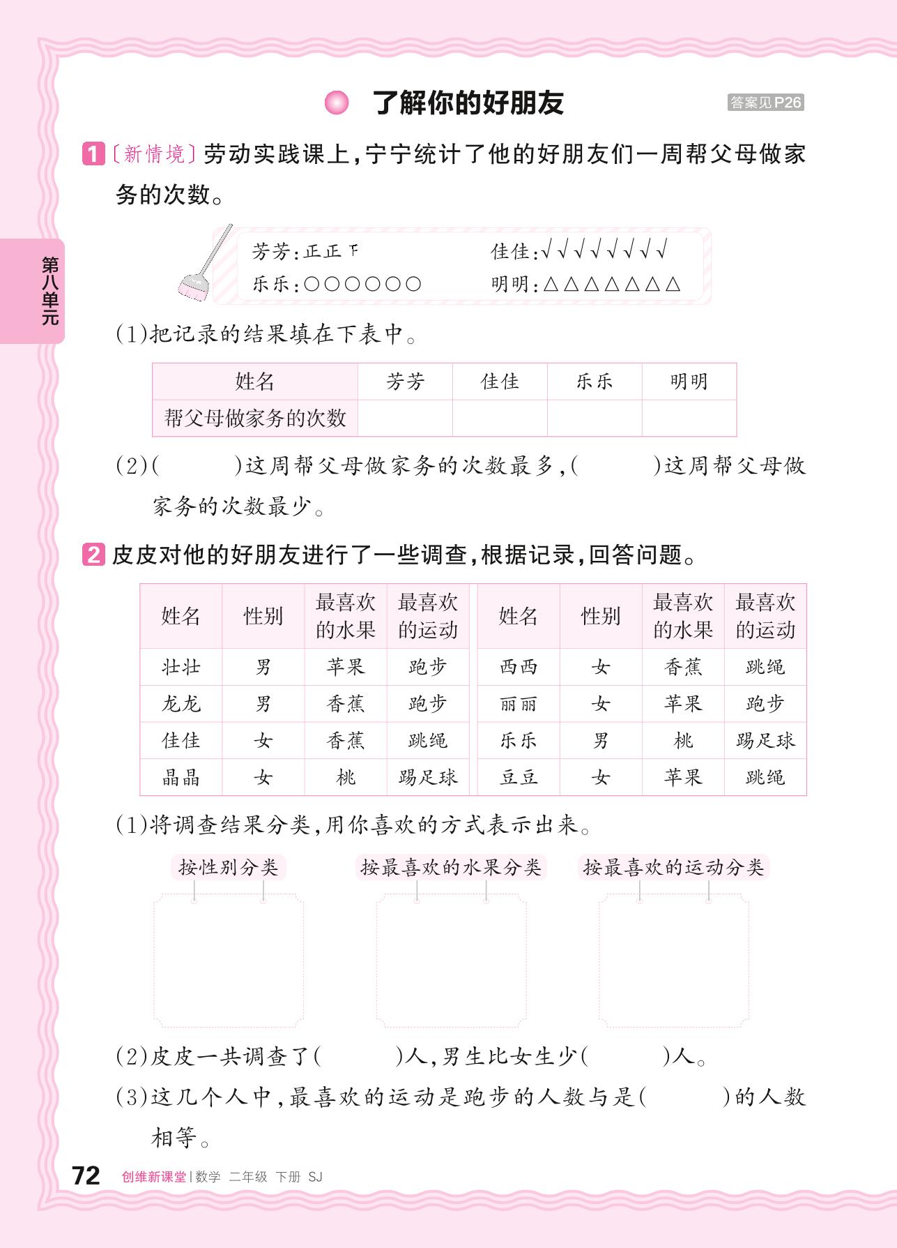 2024春下册二年级数学苏教版 第八单元 数据的收集和整理(一)——了解你的好朋友