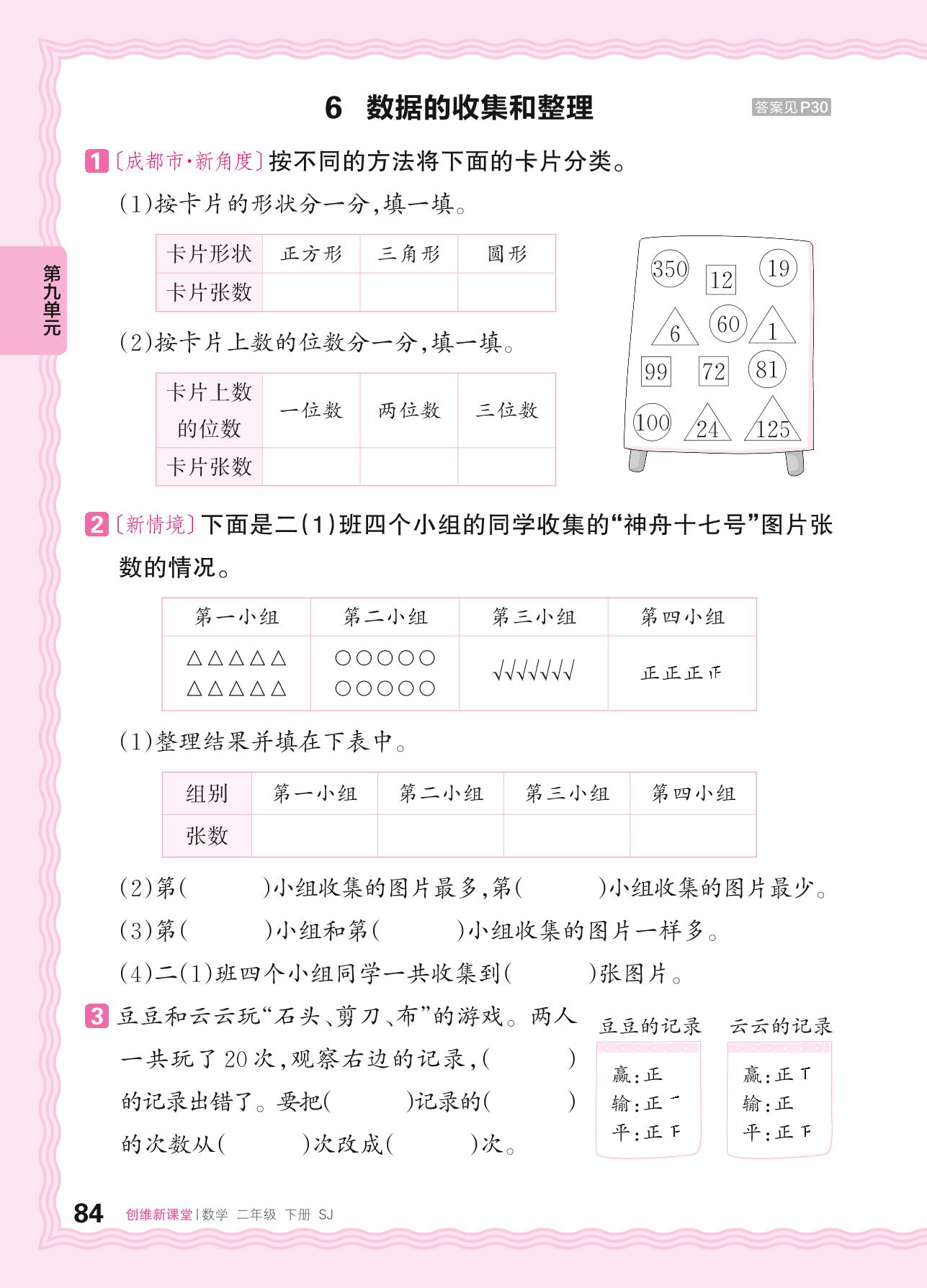 2024春下册二年级数学苏教版 第九单元 期末复习——6. 数据的收集和整理