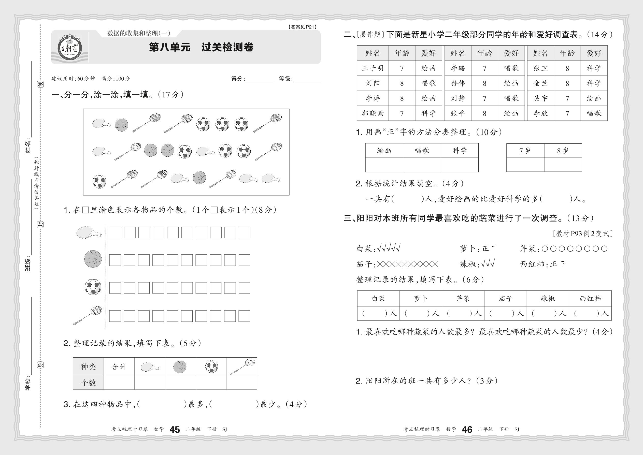 2024春下册二年级数学苏教版 第八单元 过关检测卷