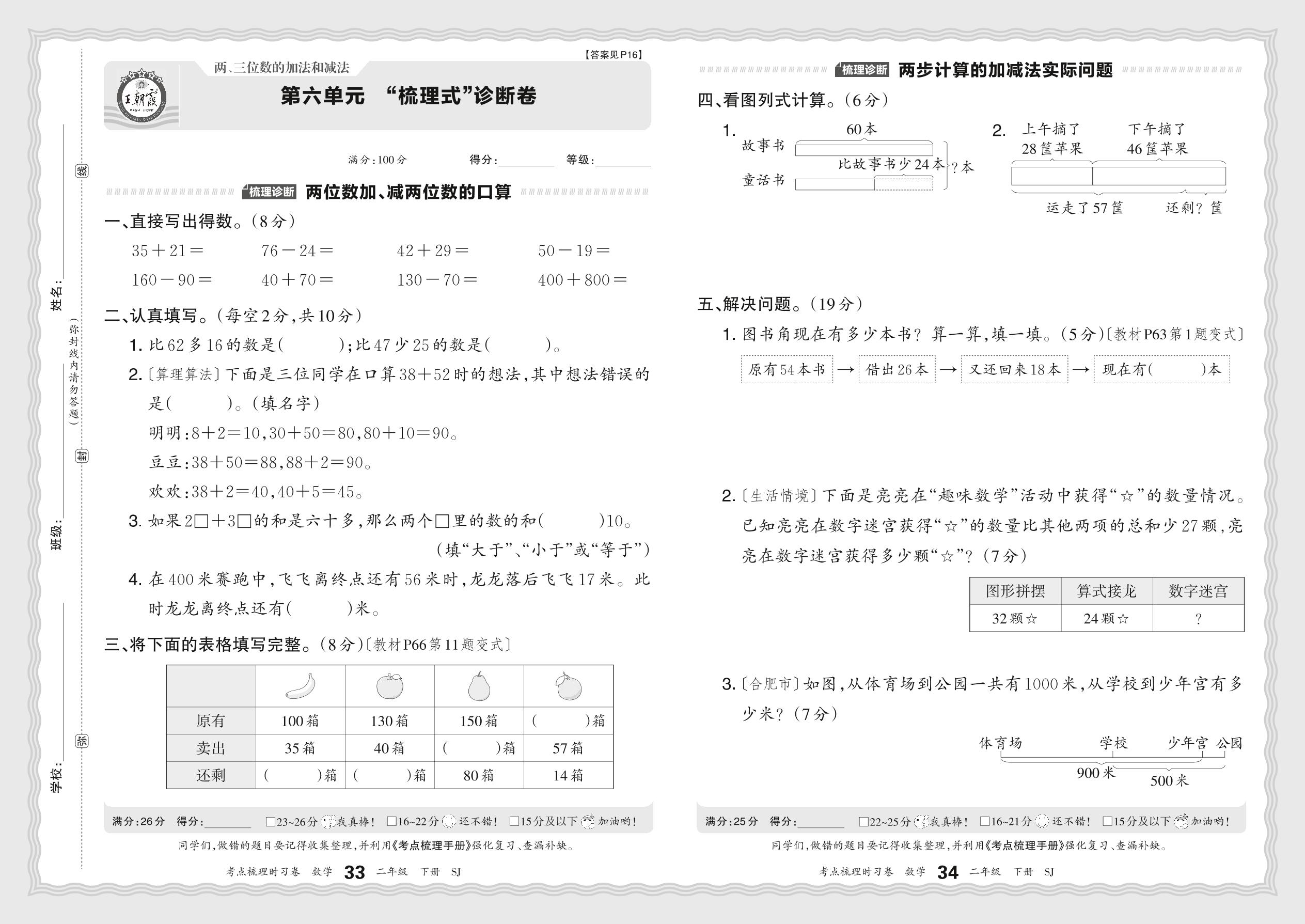 2024春下册二年级数学苏教版 第六单元 “梳理式”诊断卷