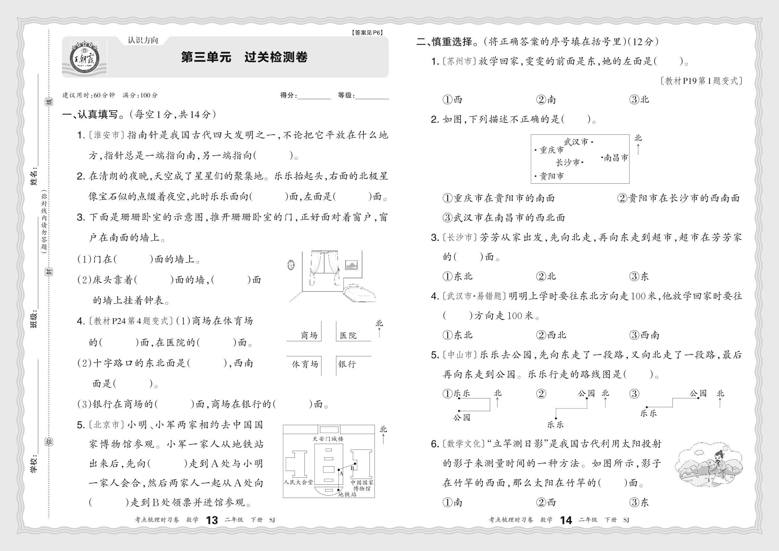 2024春下册二年级数学苏教版 第三单元 过关检测卷