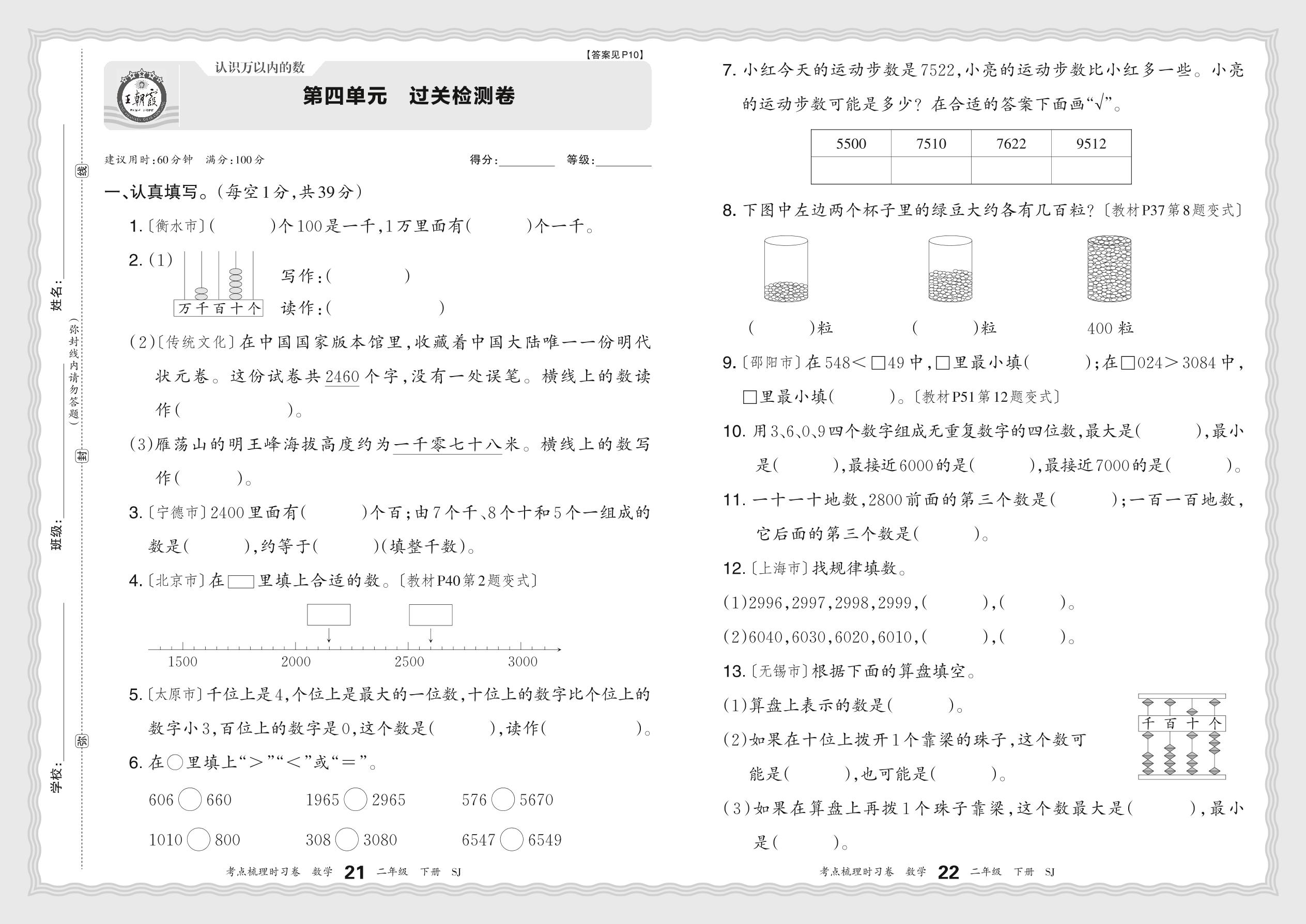二年级数学苏教版下册单元卷