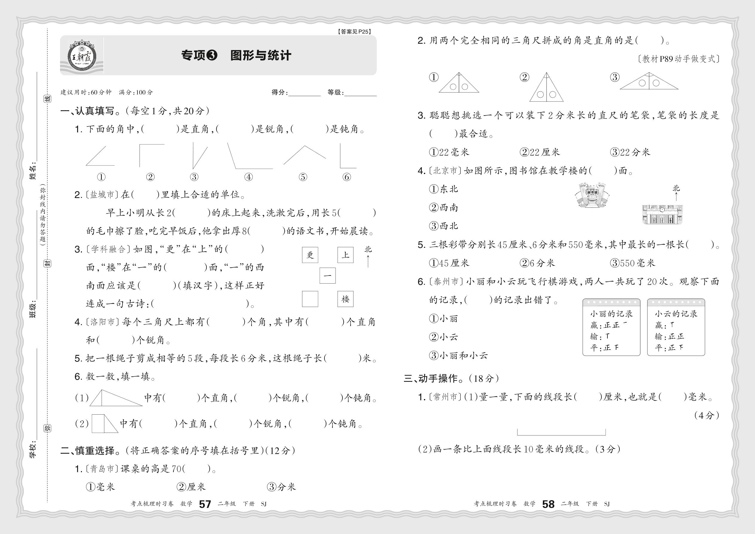 2024春下册二年级数学苏教版 期末专项卷KD版·图形与统计【3】