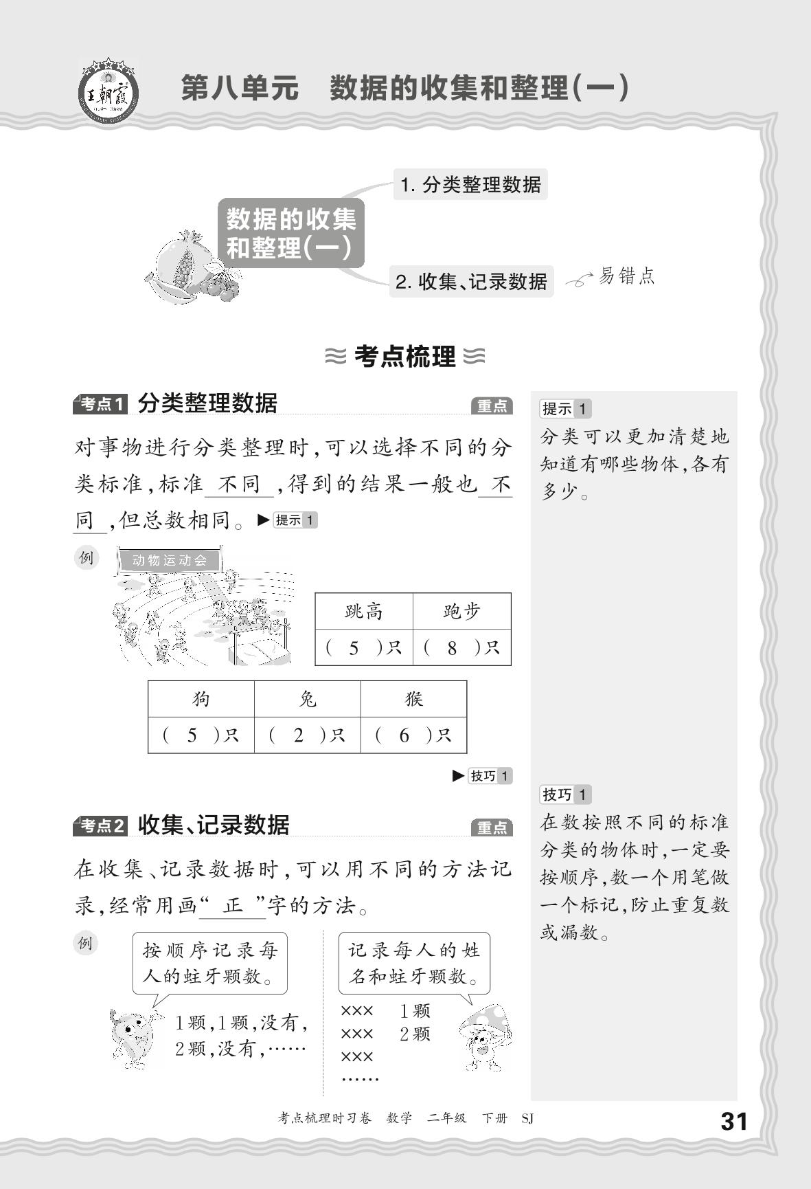 2024春下册二年级数学苏教版 考点梳理手册——第八单元 数据的收集和整理(一)