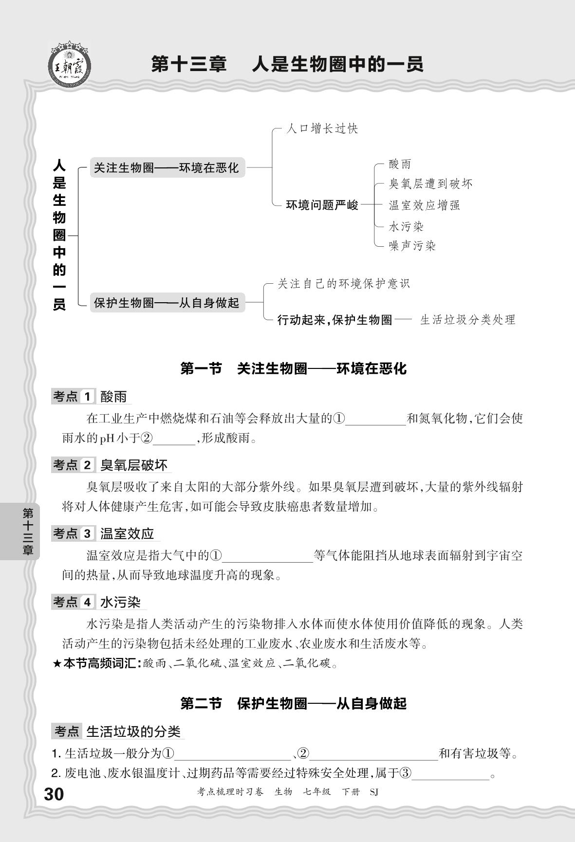 2024春下册七年级生物苏教版 考点梳理手册——第十三章 人是生物圈中的一员