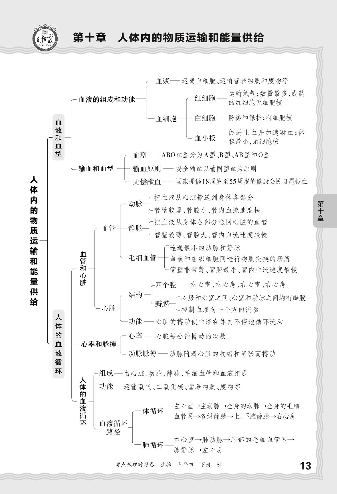 2024春下册七年级生物苏教版 考点梳理手册——第十章 人体内的物质运输和能量供给