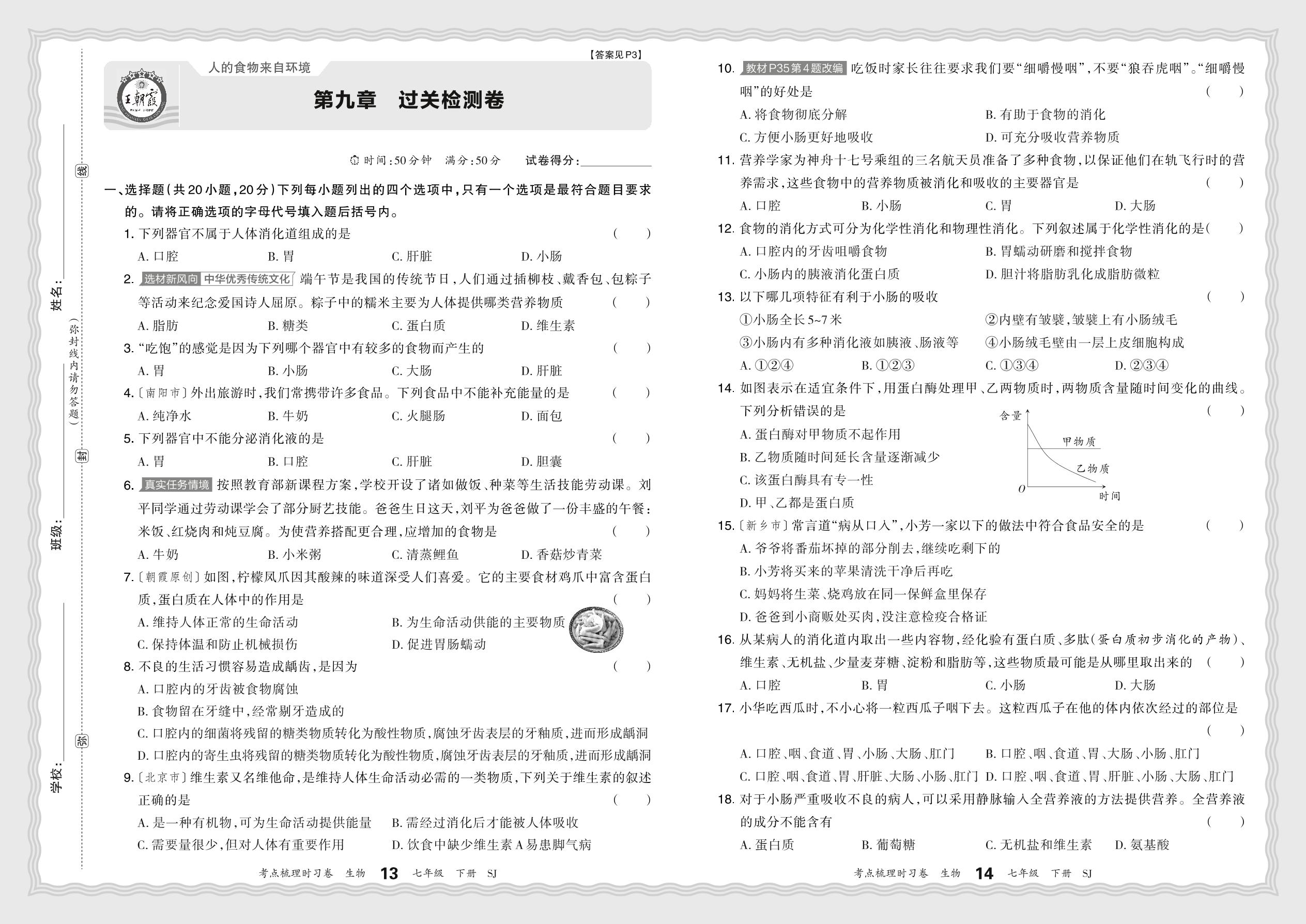 七年级生物苏教版下册单元卷