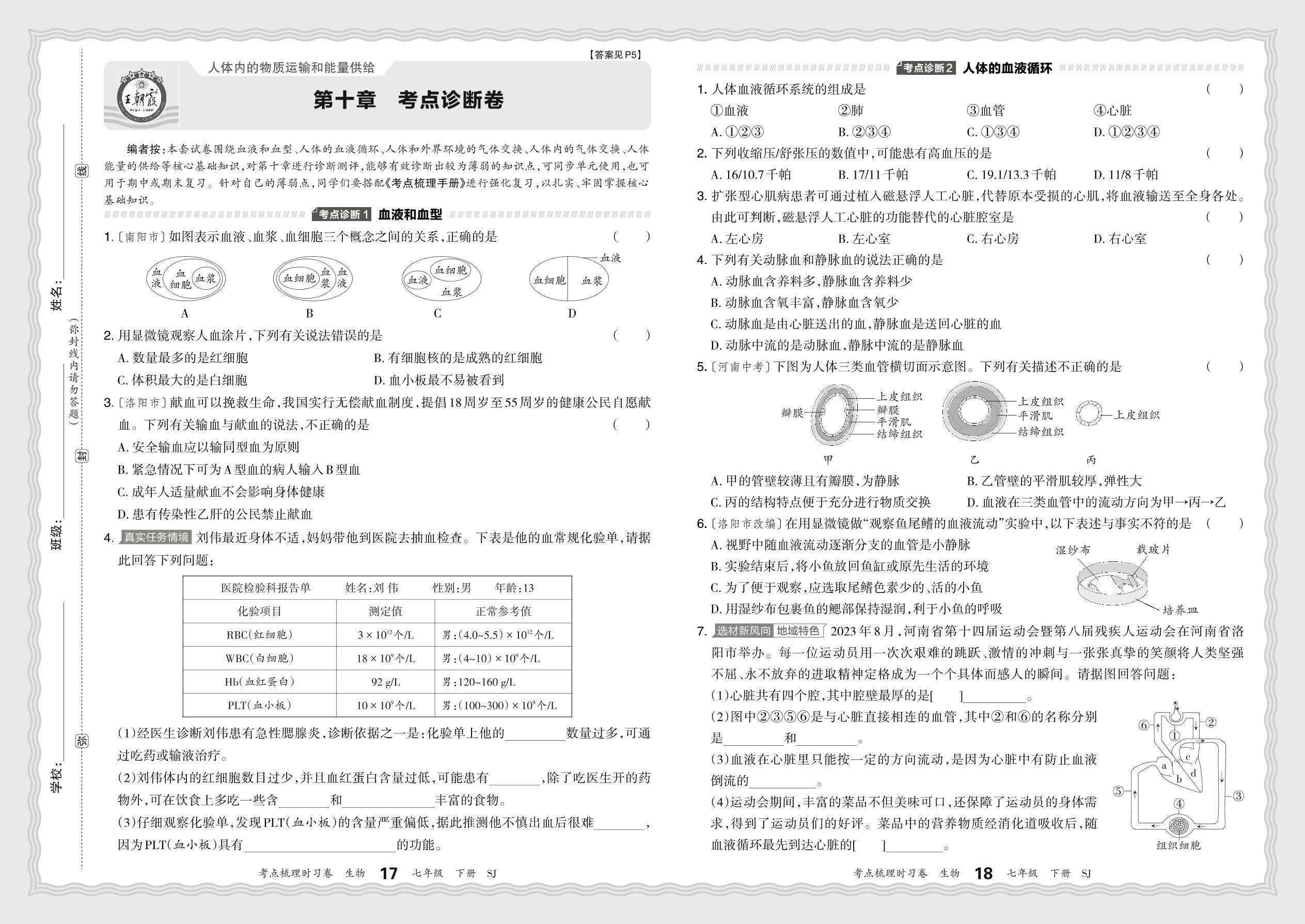 2024春下册七年级生物苏教版 第十章 考点诊断卷