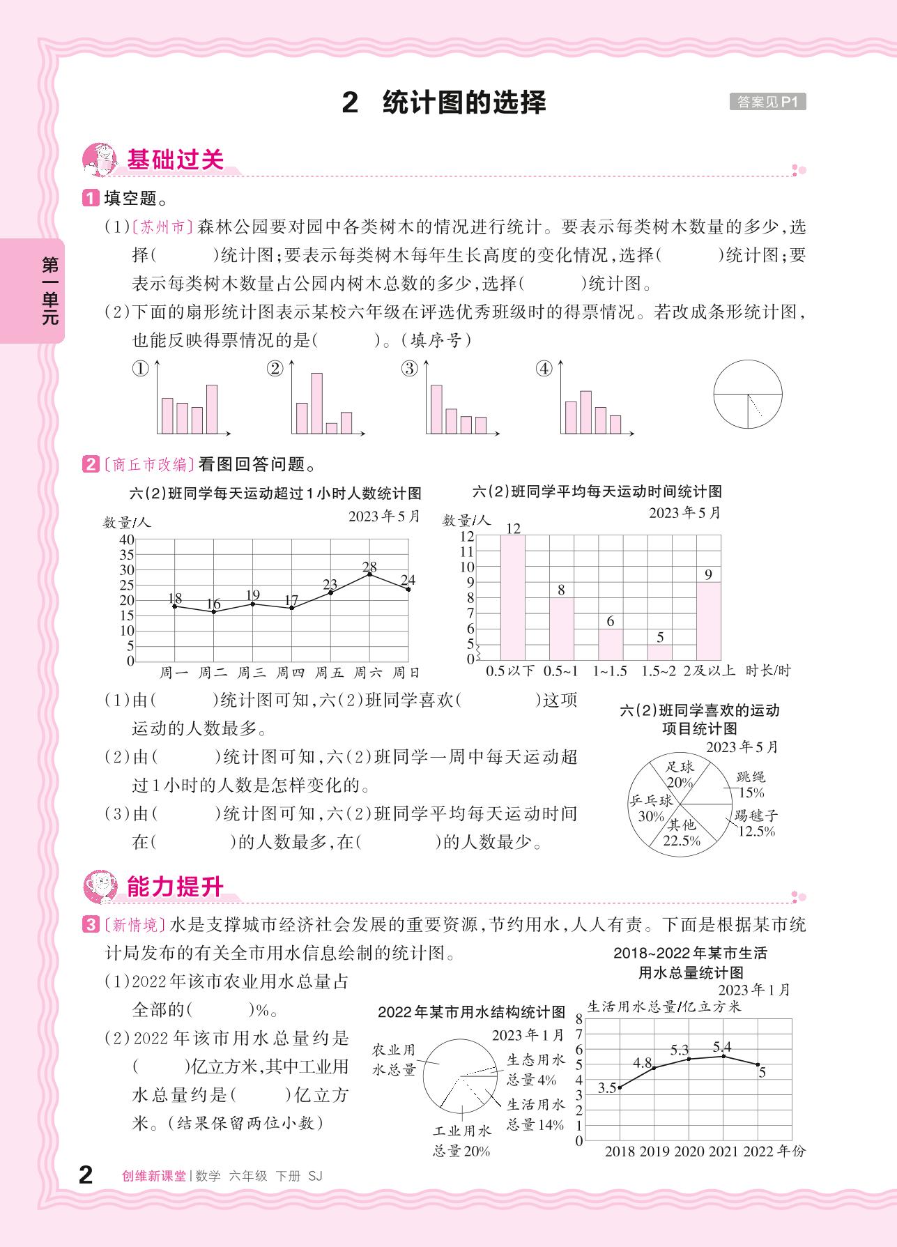 2024春下册六年级数学苏教版 第一单元 扇形统计图——2. 统计图的选择