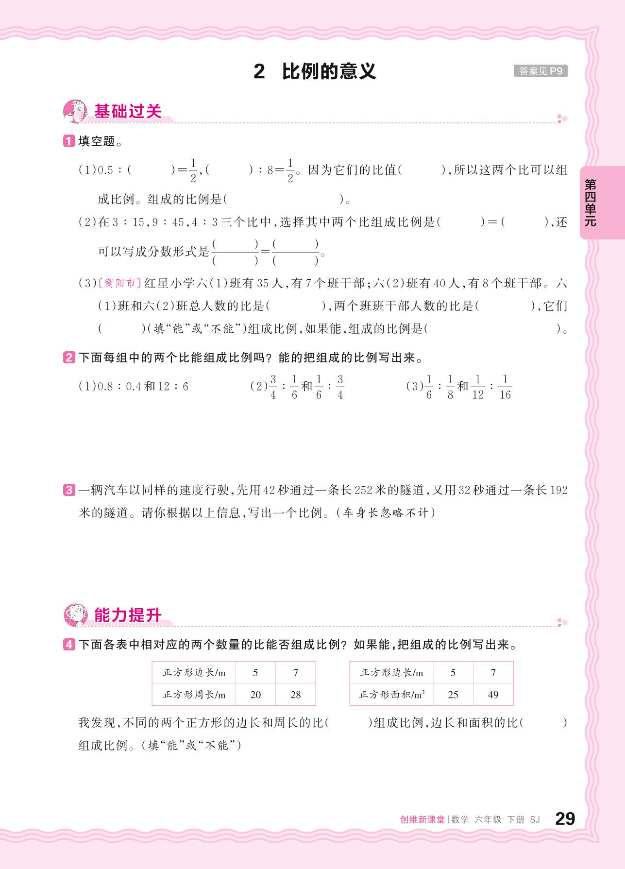 2024春下册六年级数学苏教版 第四单元 比例——2. 比例的意义