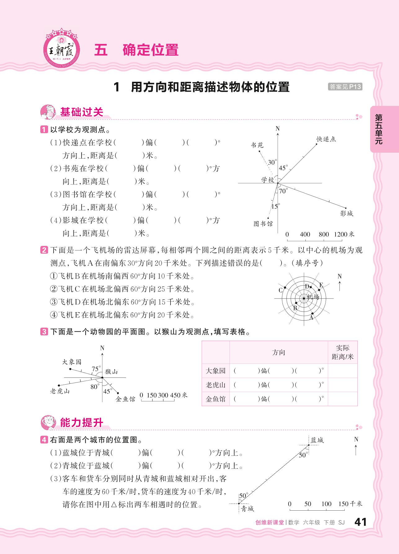 2024春下册六年级数学苏教版 第五单元 确定位置——1. 用方向和距离描述物体的位置