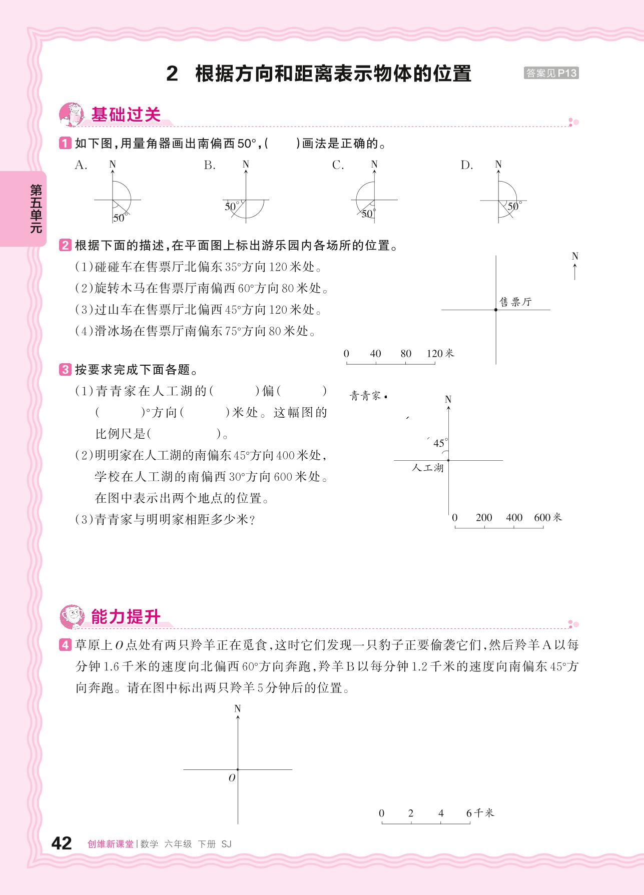 2024春下册六年级数学苏教版 第五单元 确定位置——2. 根据方向和距离表示物体的位置