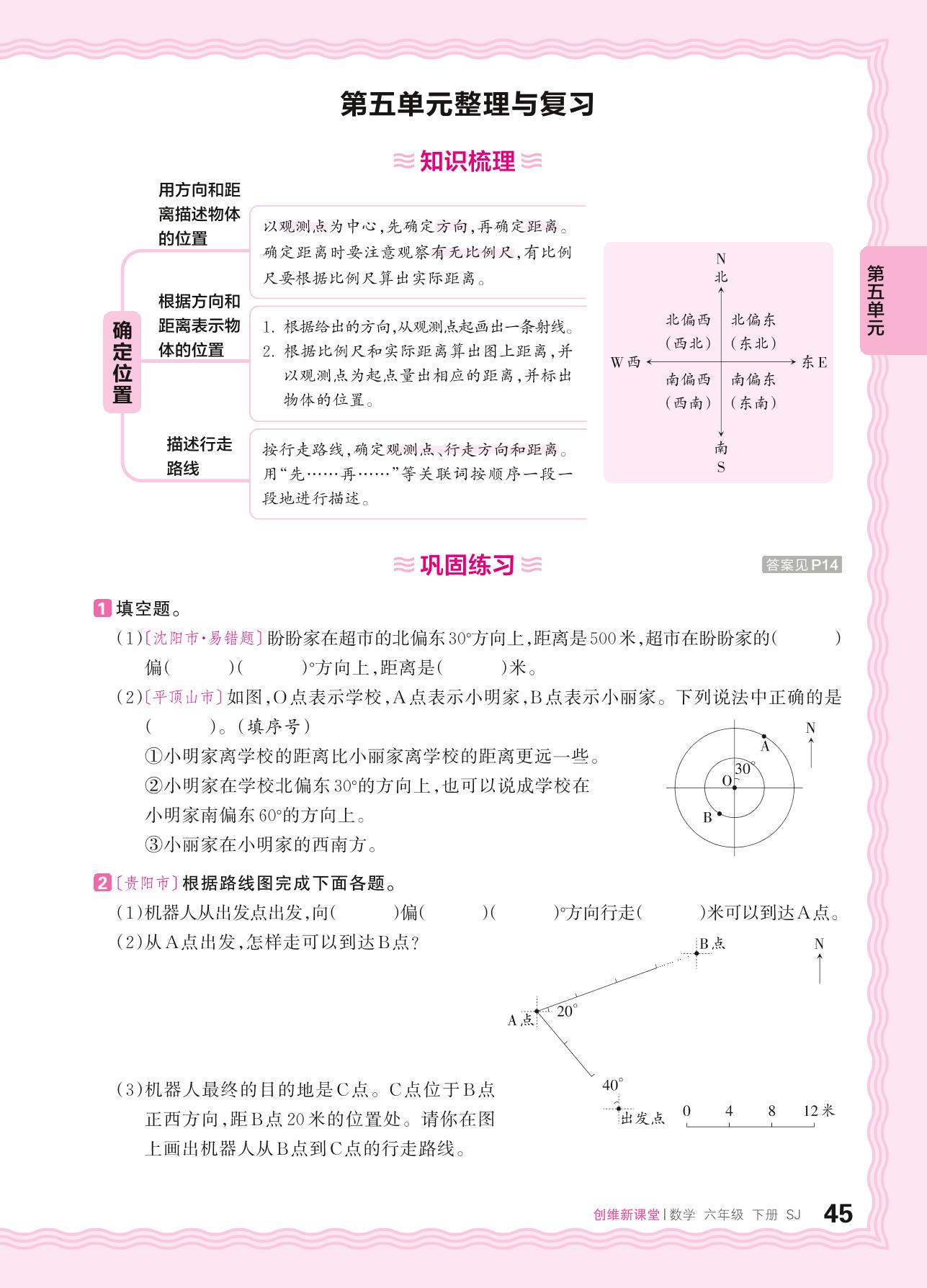 2024春下册六年级数学苏教版 第五单元整理与复习