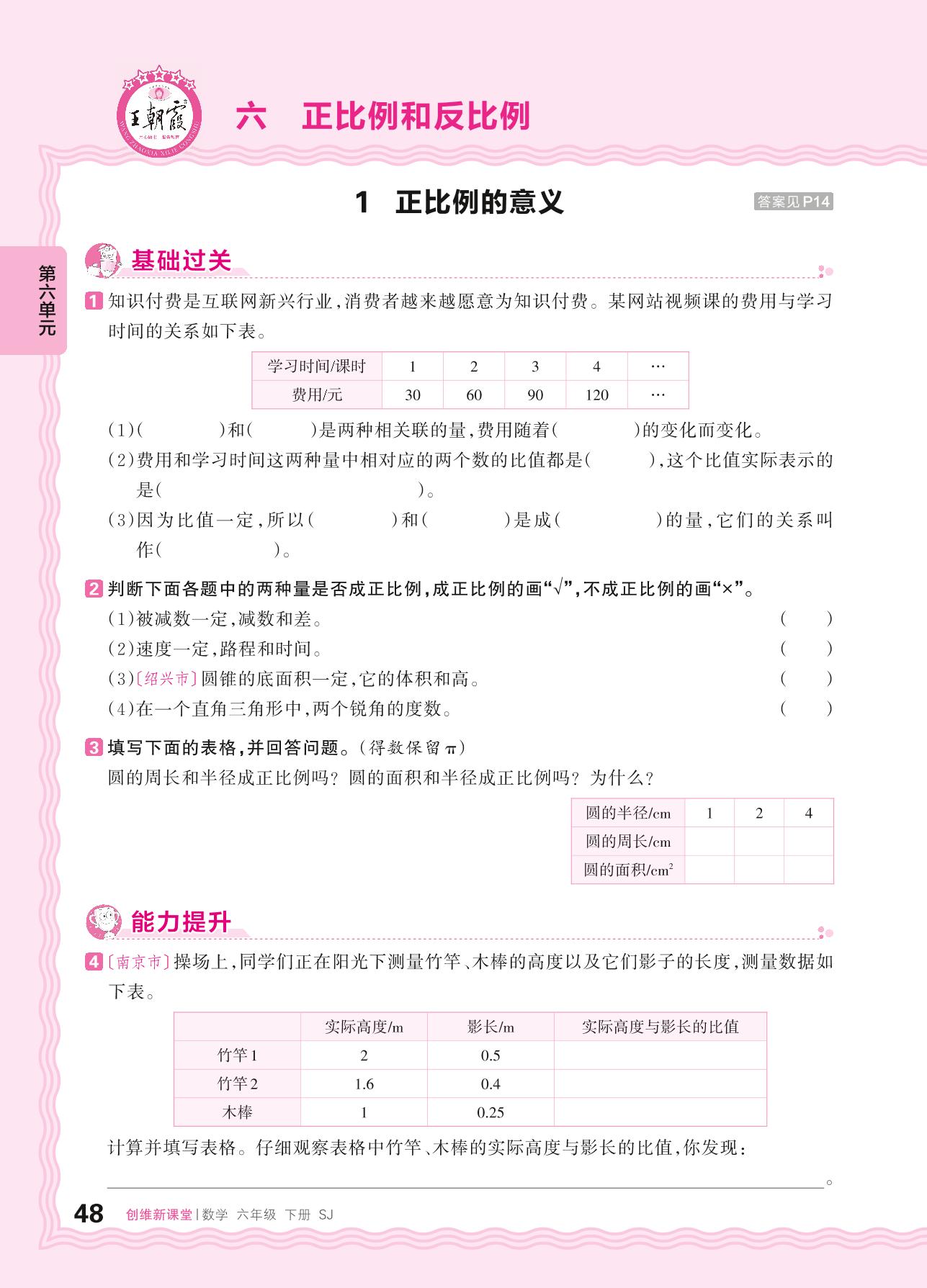 2024春下册六年级数学苏教版 第六单元 正比例和反比例——1. 正比例的意义
