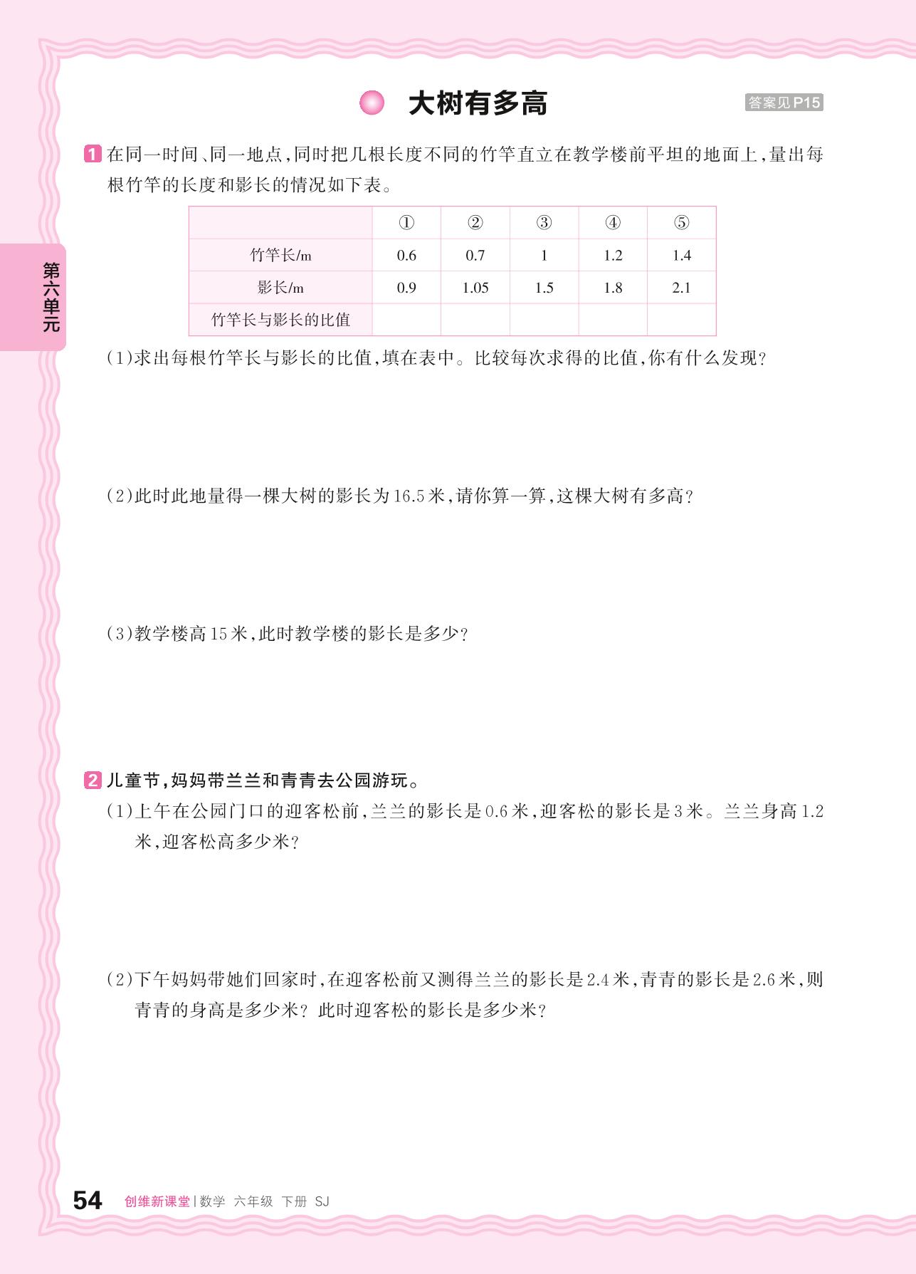 2024春下册六年级数学苏教版 第六单元 正比例和反比例——大树有多高