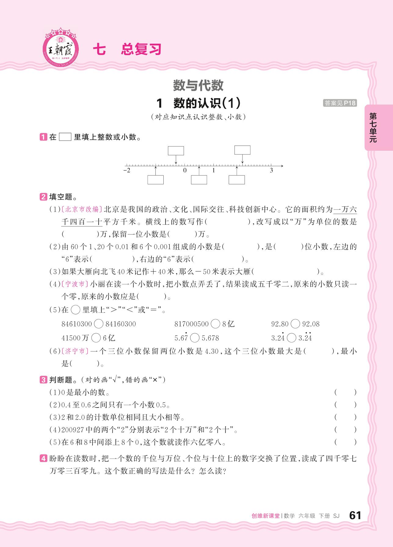 2024春下册六年级数学苏教版 第七单元 总复习(数与代数)——1. 数的认识(1)