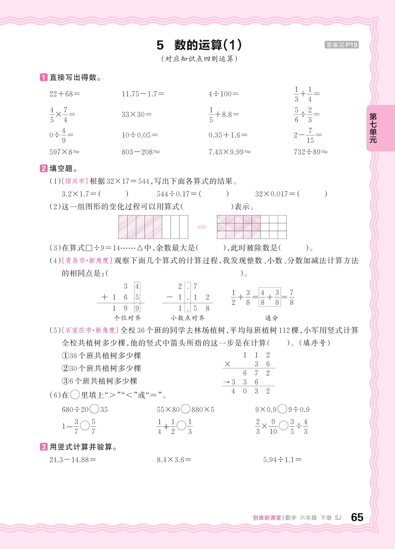 2024春下册六年级数学苏教版 第七单元 总复习(数与代数)——5. 数的运算(1)