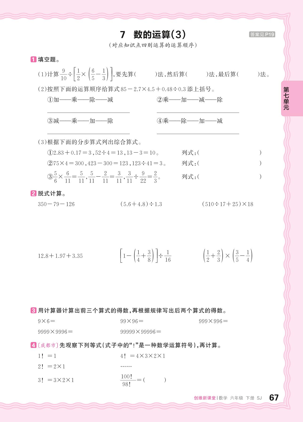 2024春下册六年级数学苏教版 第七单元 总复习(数与代数)——7. 数的运算(3)