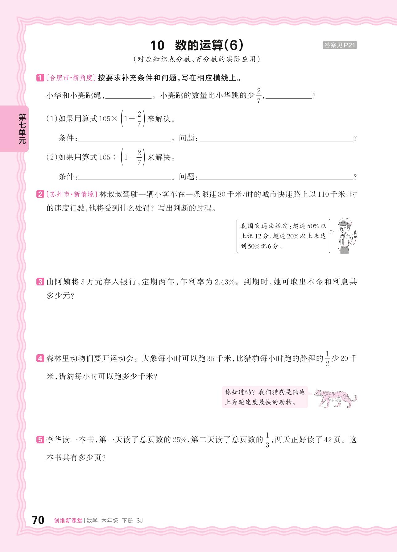 2024春下册六年级数学苏教版 第七单元 总复习(数与代数)——10. 数的运算(6)