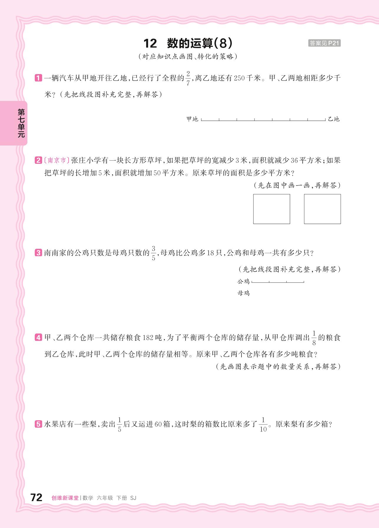 2024春下册六年级数学苏教版 第七单元 总复习(数与代数)——12. 数的运算(8)