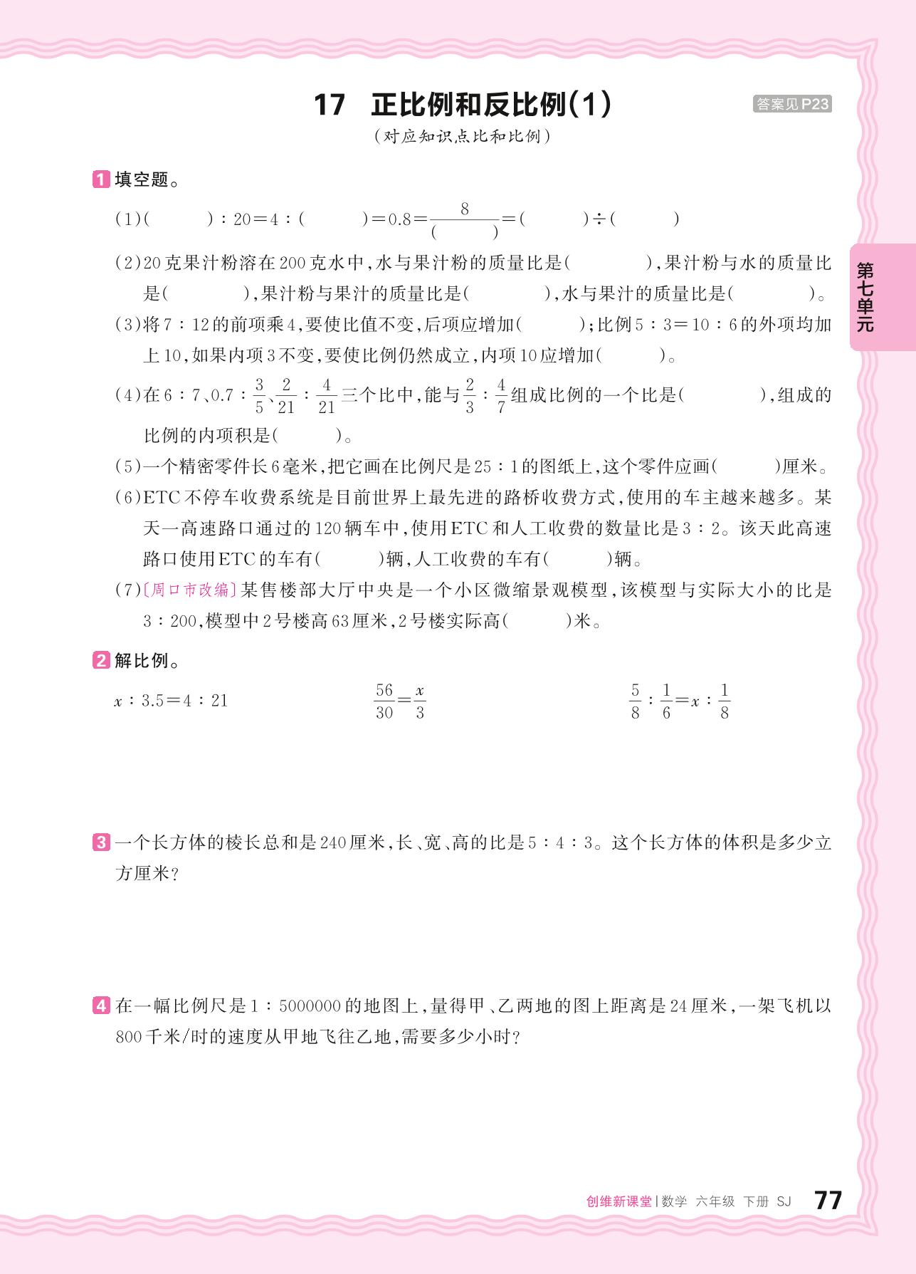2024春下册六年级数学苏教版 第七单元 总复习(数与代数)——17. 正比例和反比例(1)