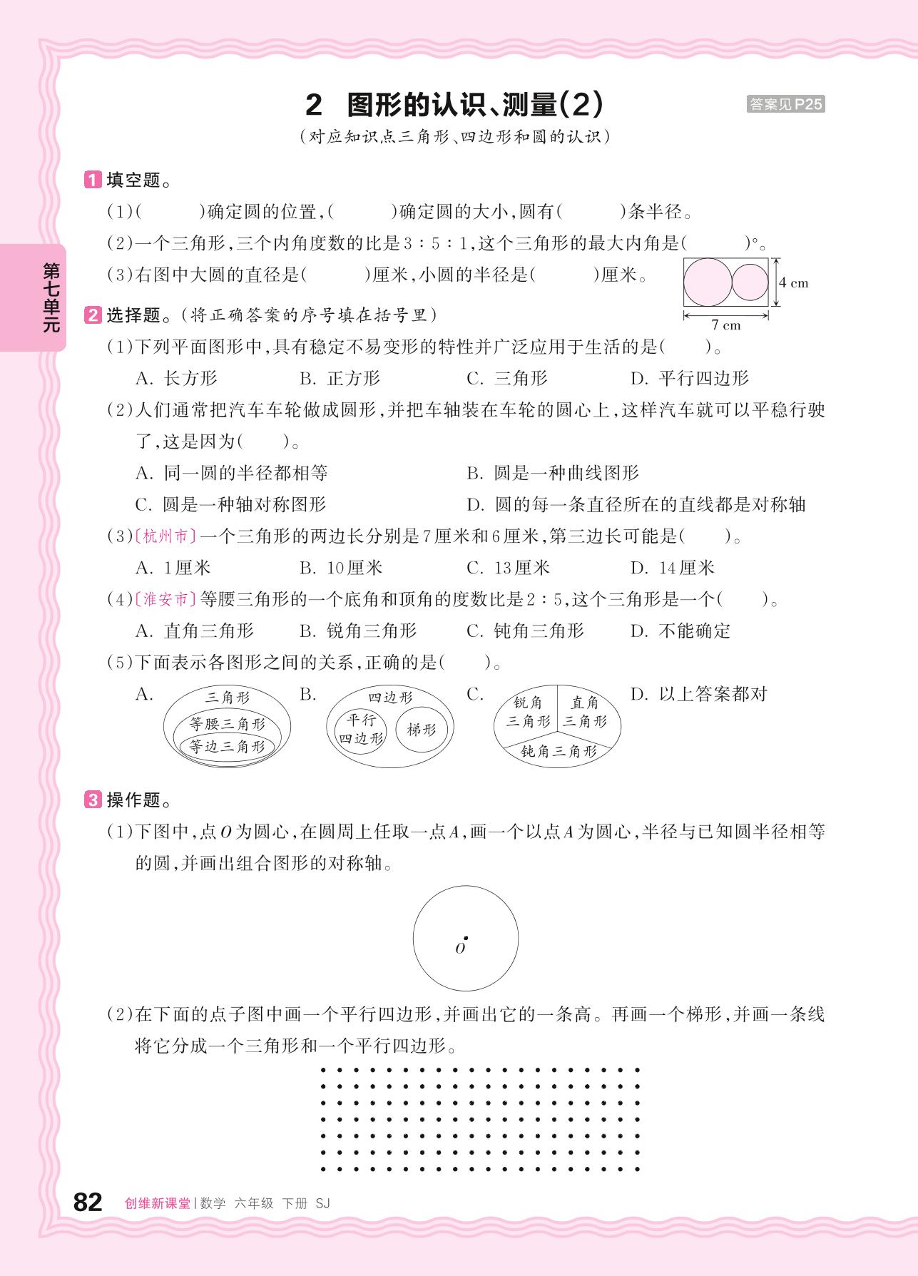 2024春下册六年级数学苏教版 第七单元 总复习(图形与几何)——2. 图形的认识、测量(2)