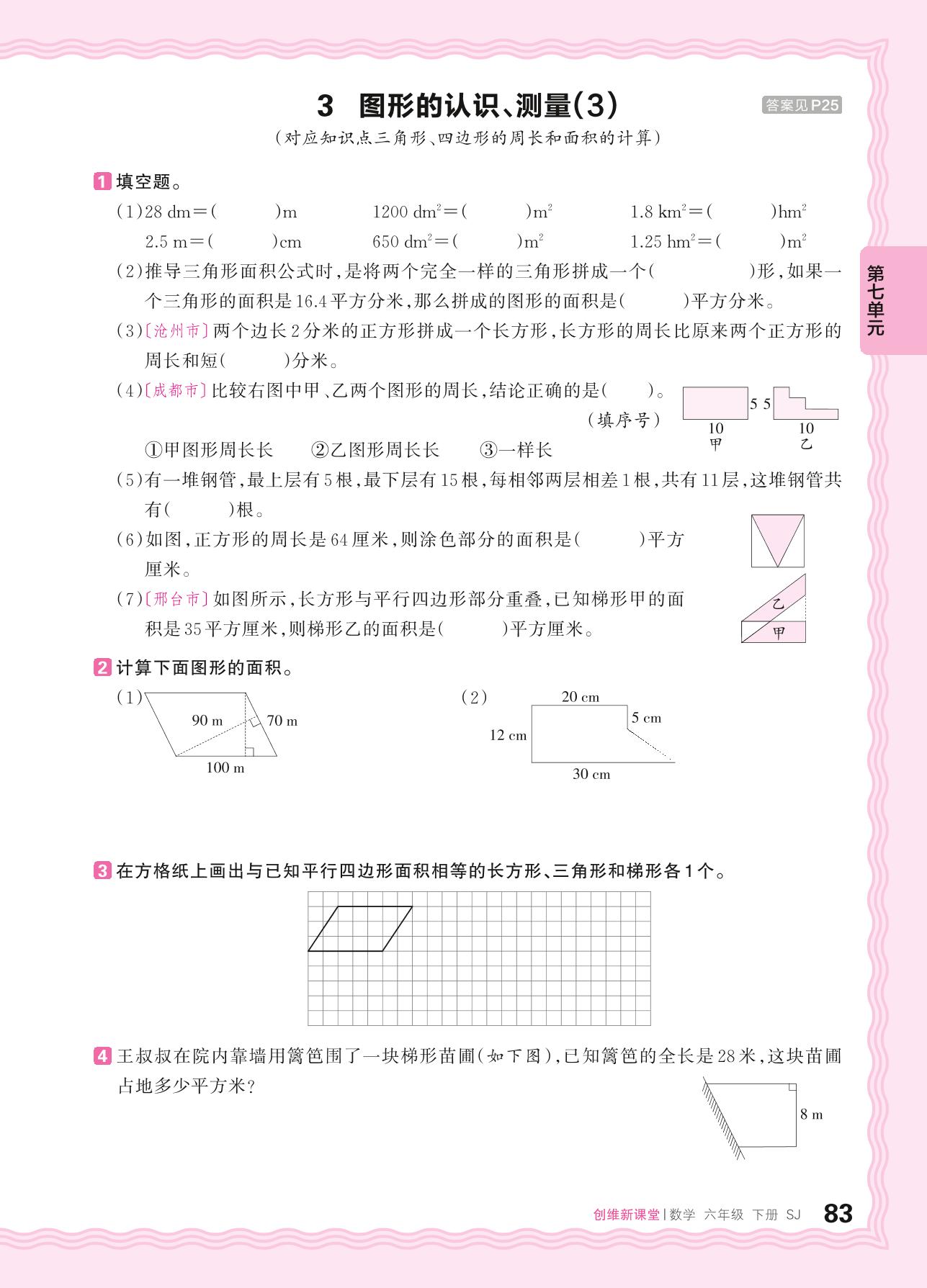 2024春下册六年级数学苏教版 第七单元 总复习(图形与几何)——3. 图形的认识、测量(3)
