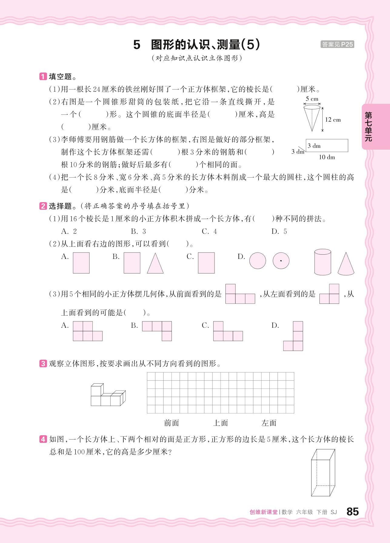 2024春下册六年级数学苏教版 第七单元 总复习(图形与几何)——5. 图形的认识、测量(5)