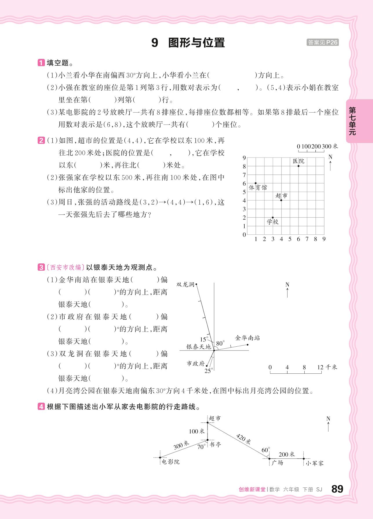 2024春下册六年级数学苏教版 第七单元 总复习(图形与几何)——9. 图形与位置