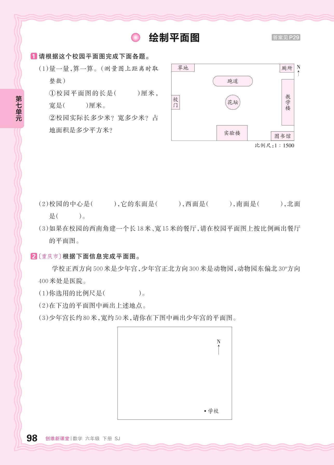 2024春下册六年级数学苏教版 第七单元 总复习(综合与实践)——绘制平面图