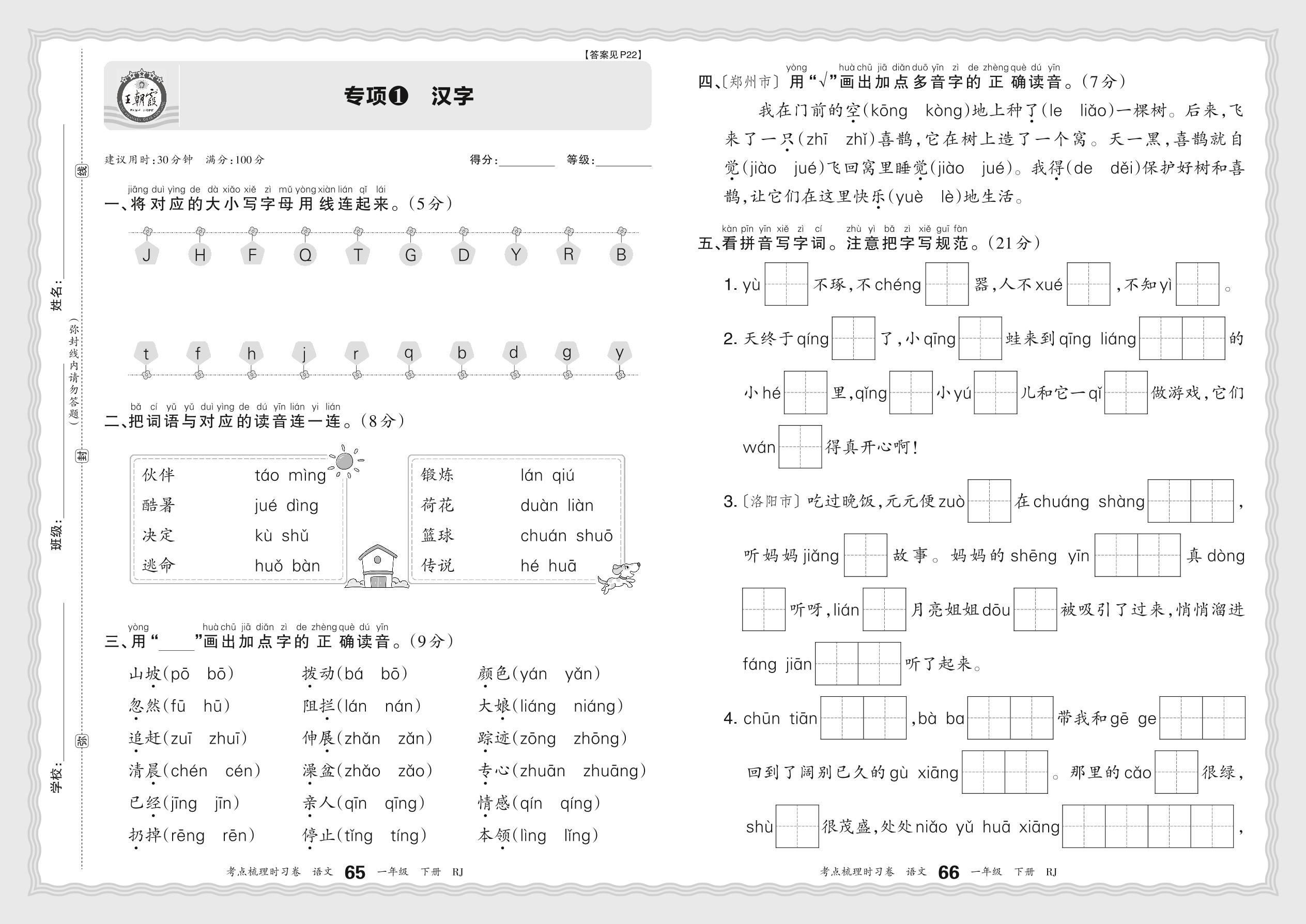 2024春下册一年级语文人教版 期末专项卷KD版·汉字【1】