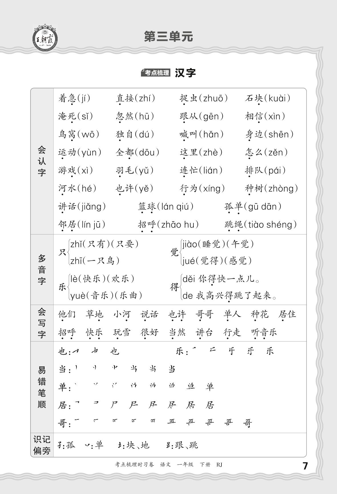 2024春下册一年级语文人教版 考点梳理手册——第三单元