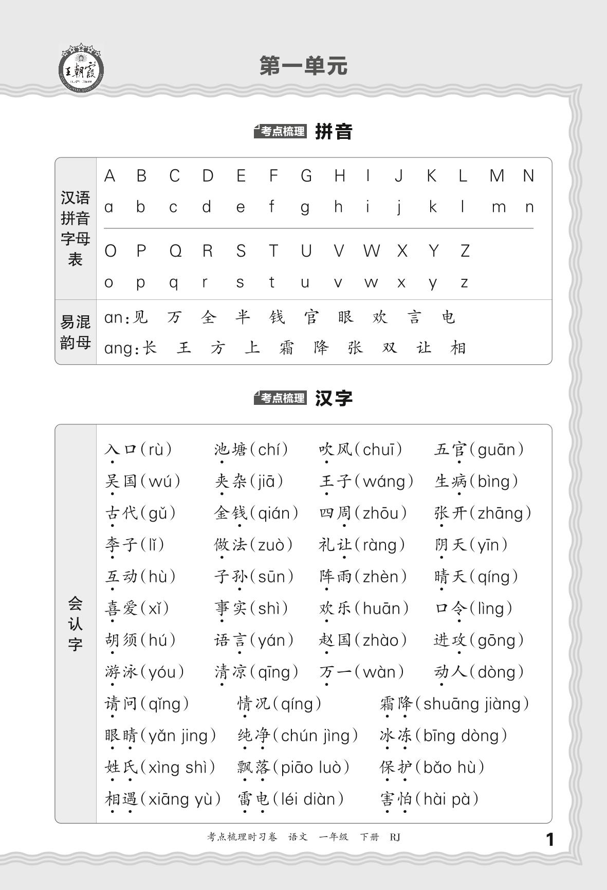 2024春下册一年级语文人教版 考点梳理手册——第一单元
