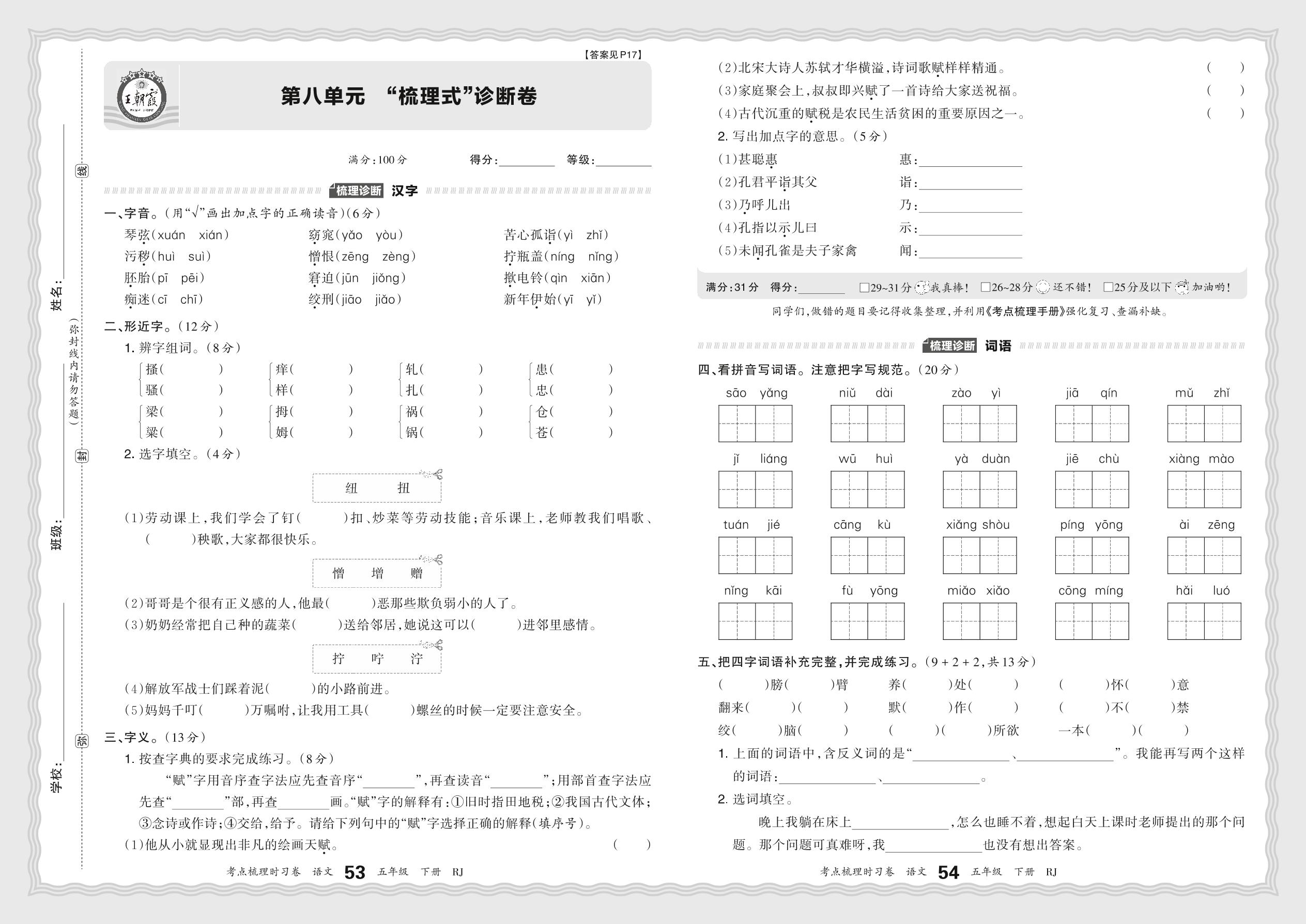 2024春下册五年级语文人教版 第八单元 “梳理式”诊断卷