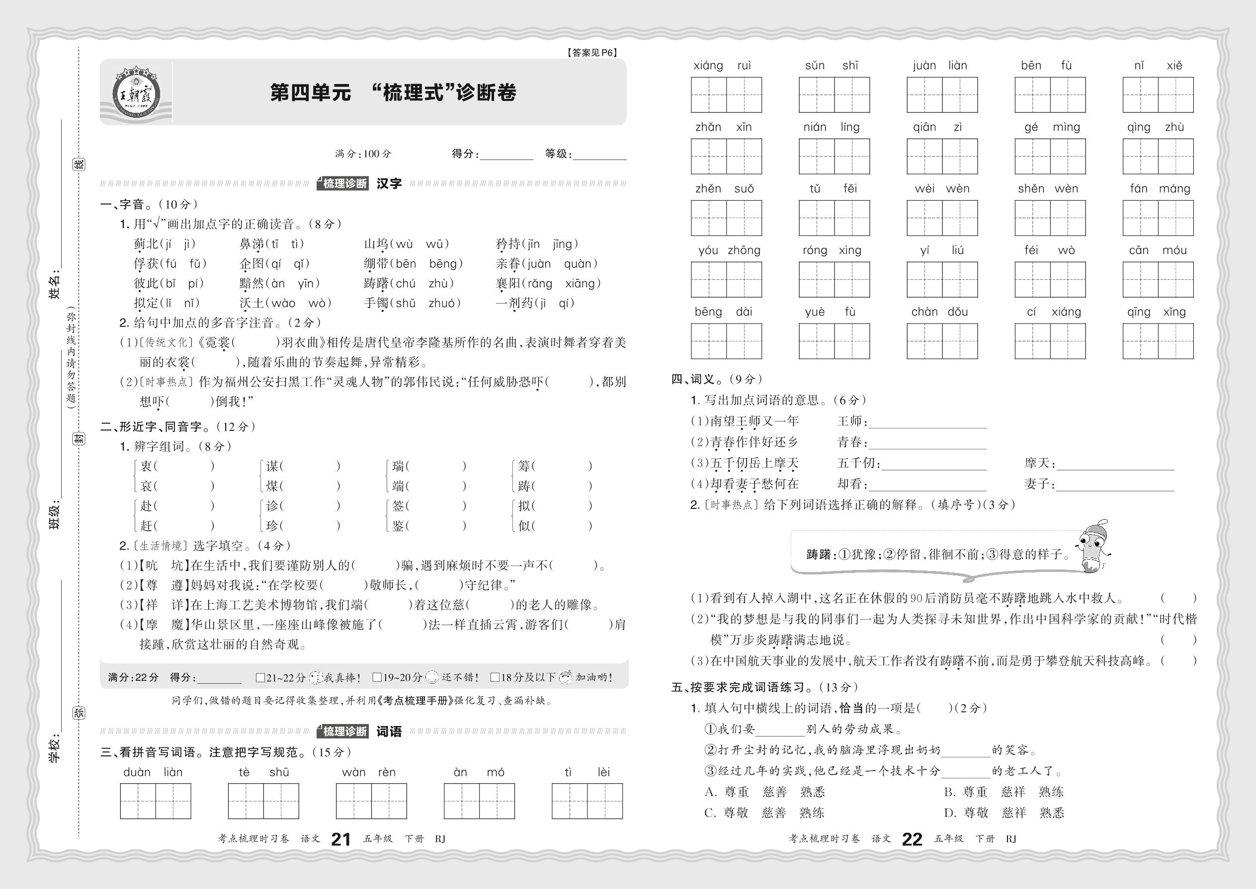 2024春下册五年级语文人教版 第四单元 “梳理式”诊断卷