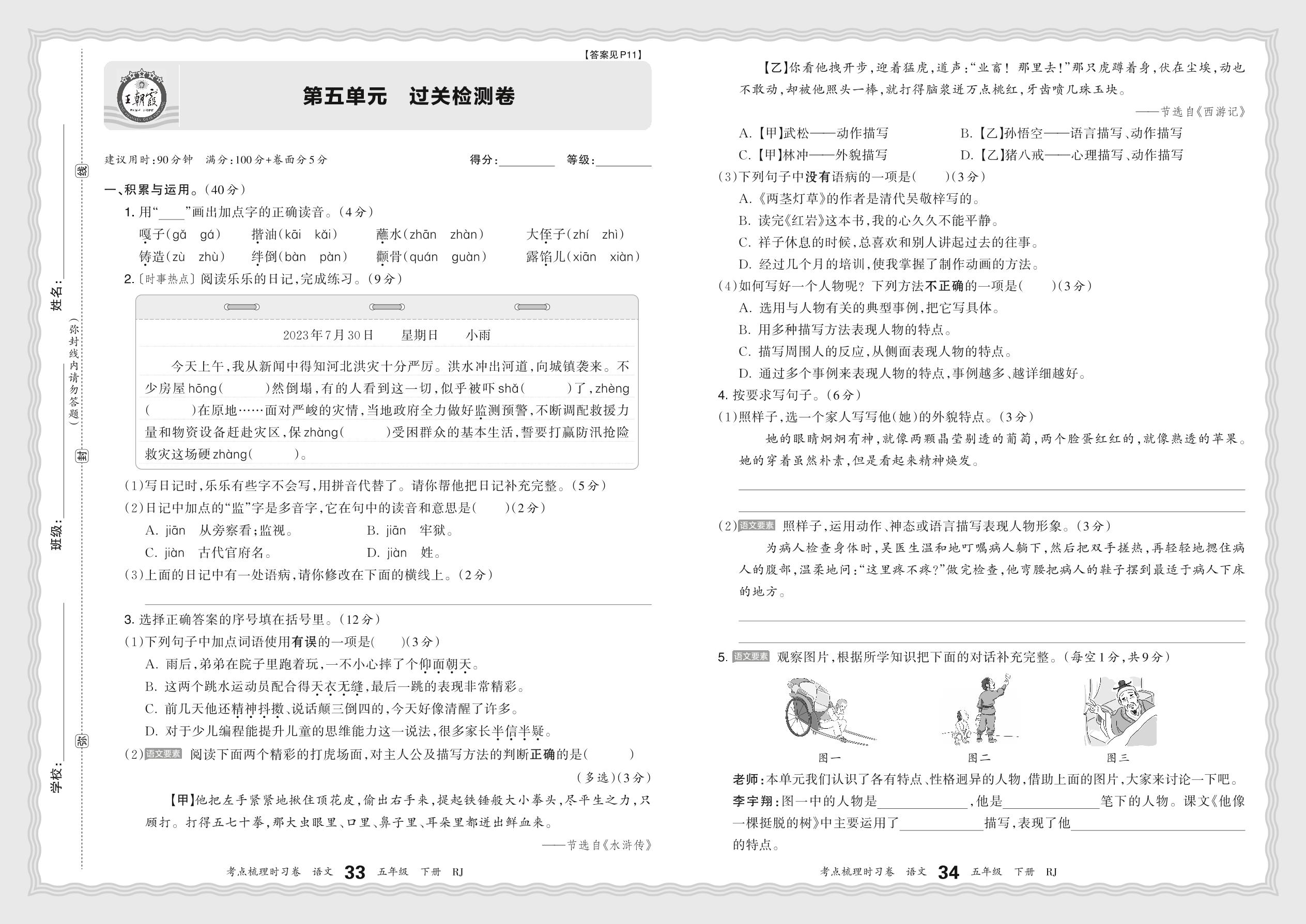 五年级语文人教版下册单元卷
