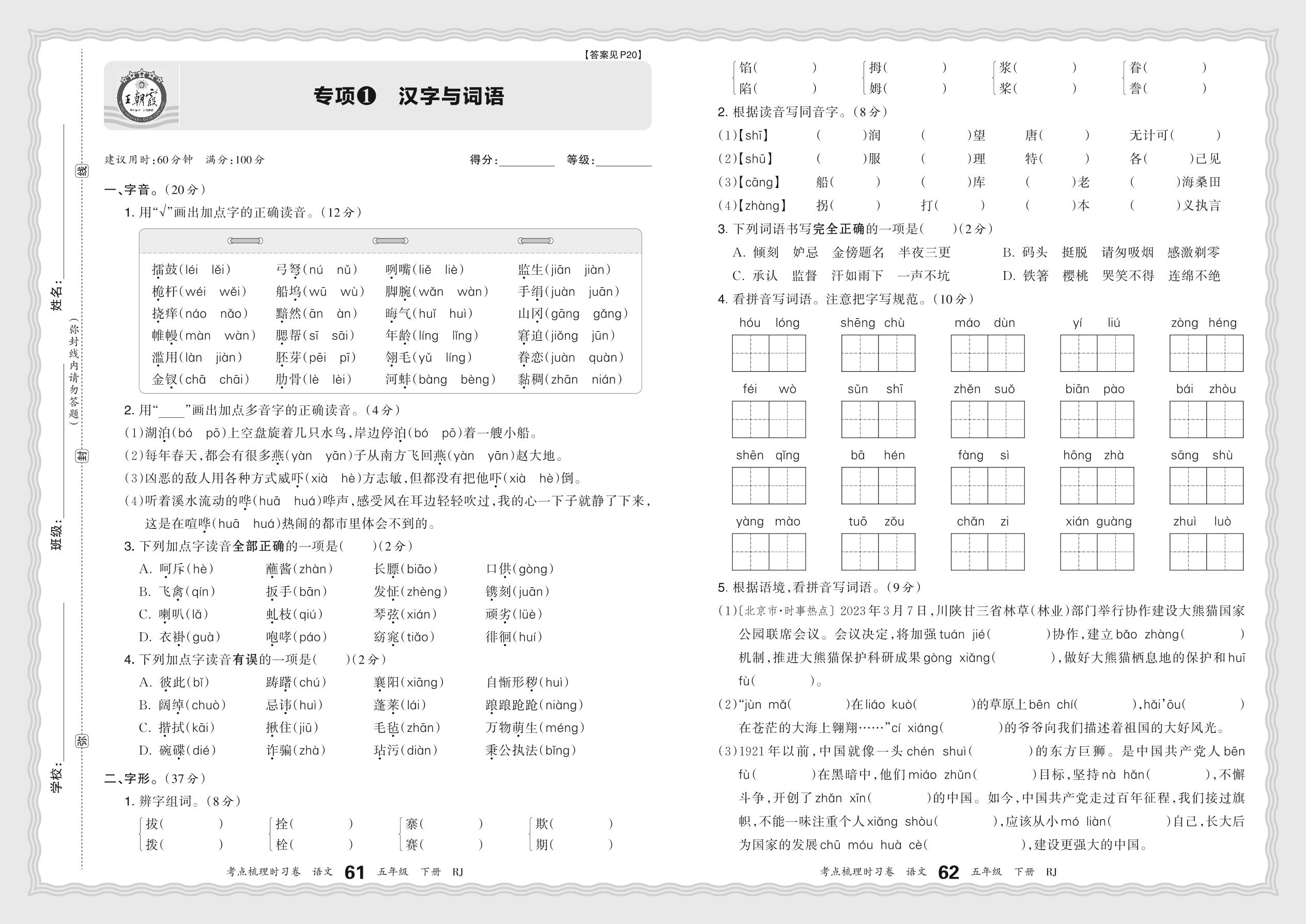 2024春下册五年级语文人教版 期末专项卷KD版·汉字与词语【1】