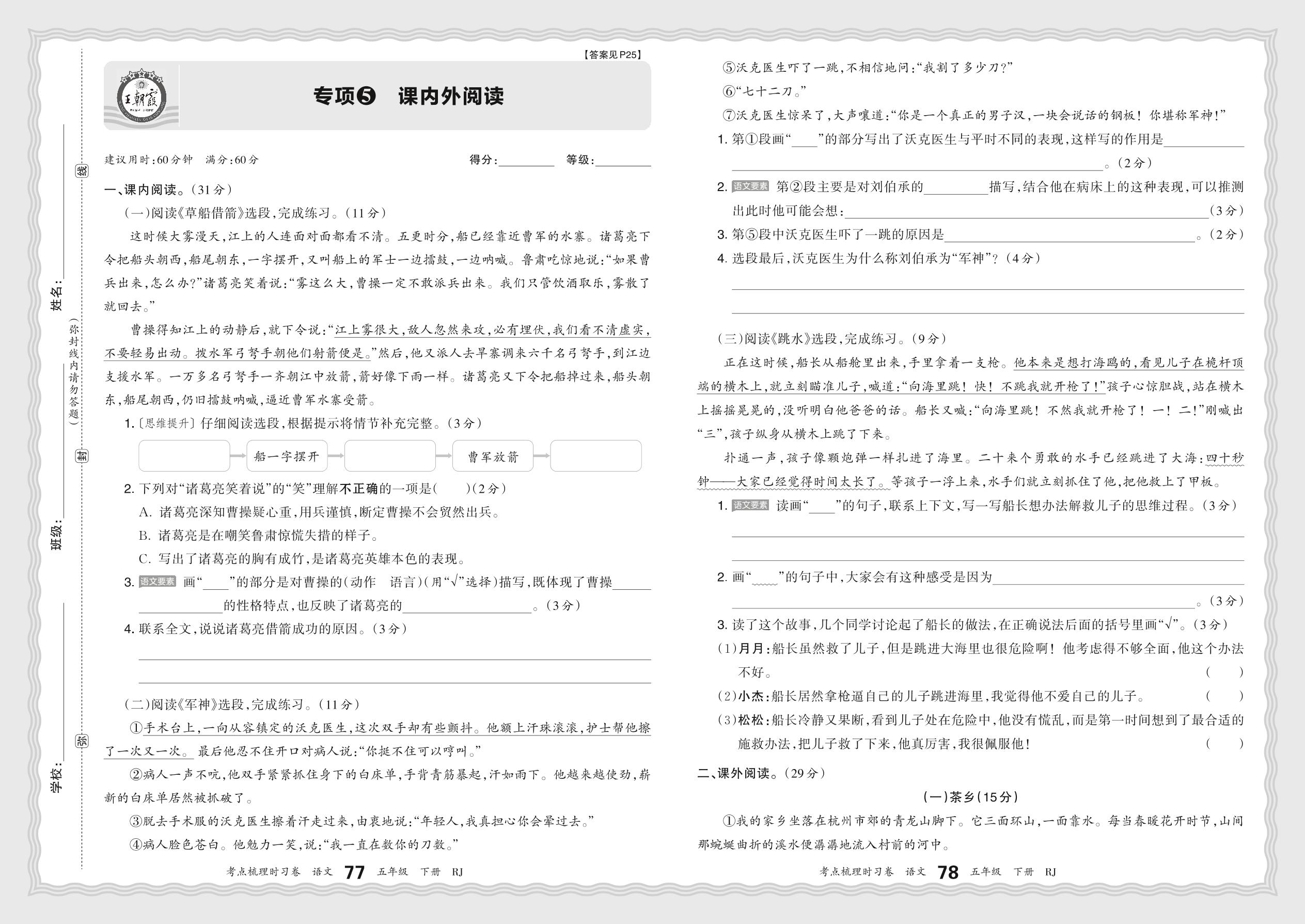 2024春下册五年级语文人教版 期末专项卷KD版·课内外阅读【5】