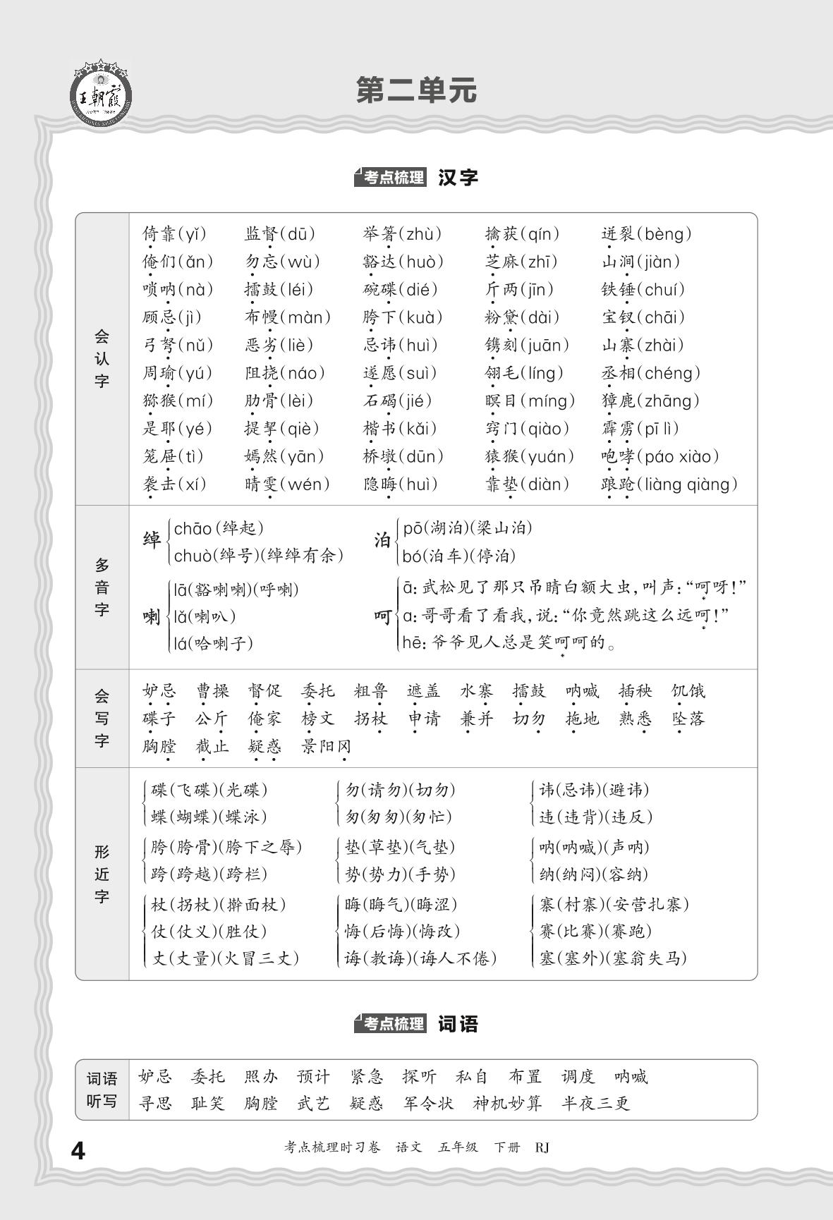 2024春下册五年级语文人教版 考点梳理手册——第二单元