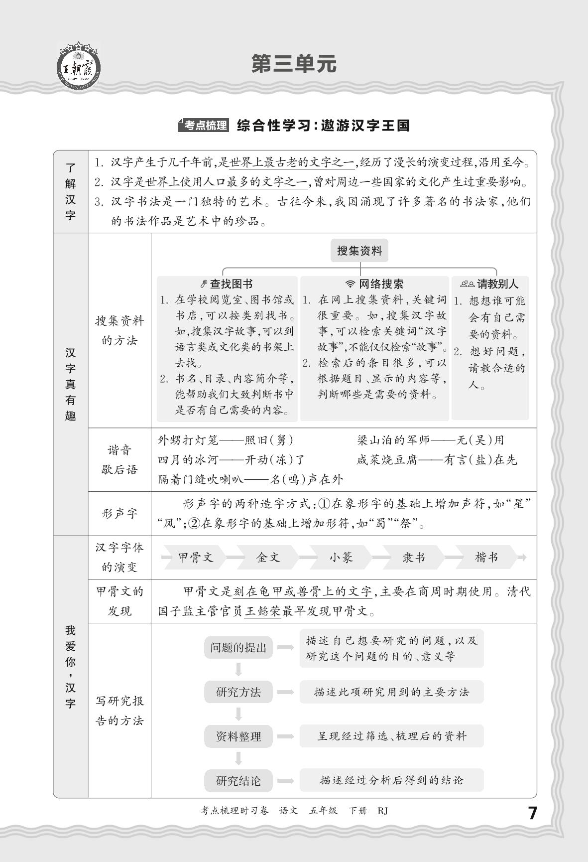 2024春下册五年级语文人教版 考点梳理手册——第三单元