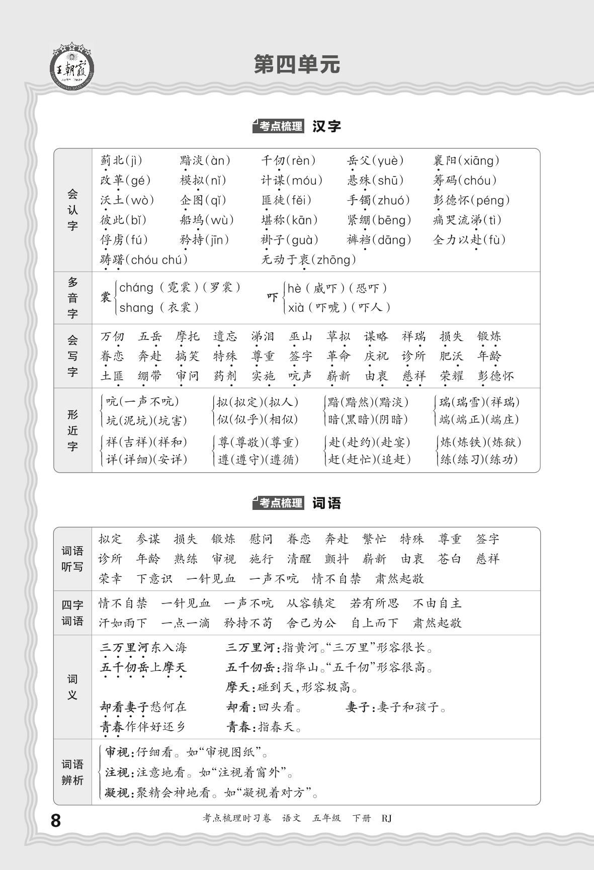 2024春下册五年级语文人教版 考点梳理手册——第四单元