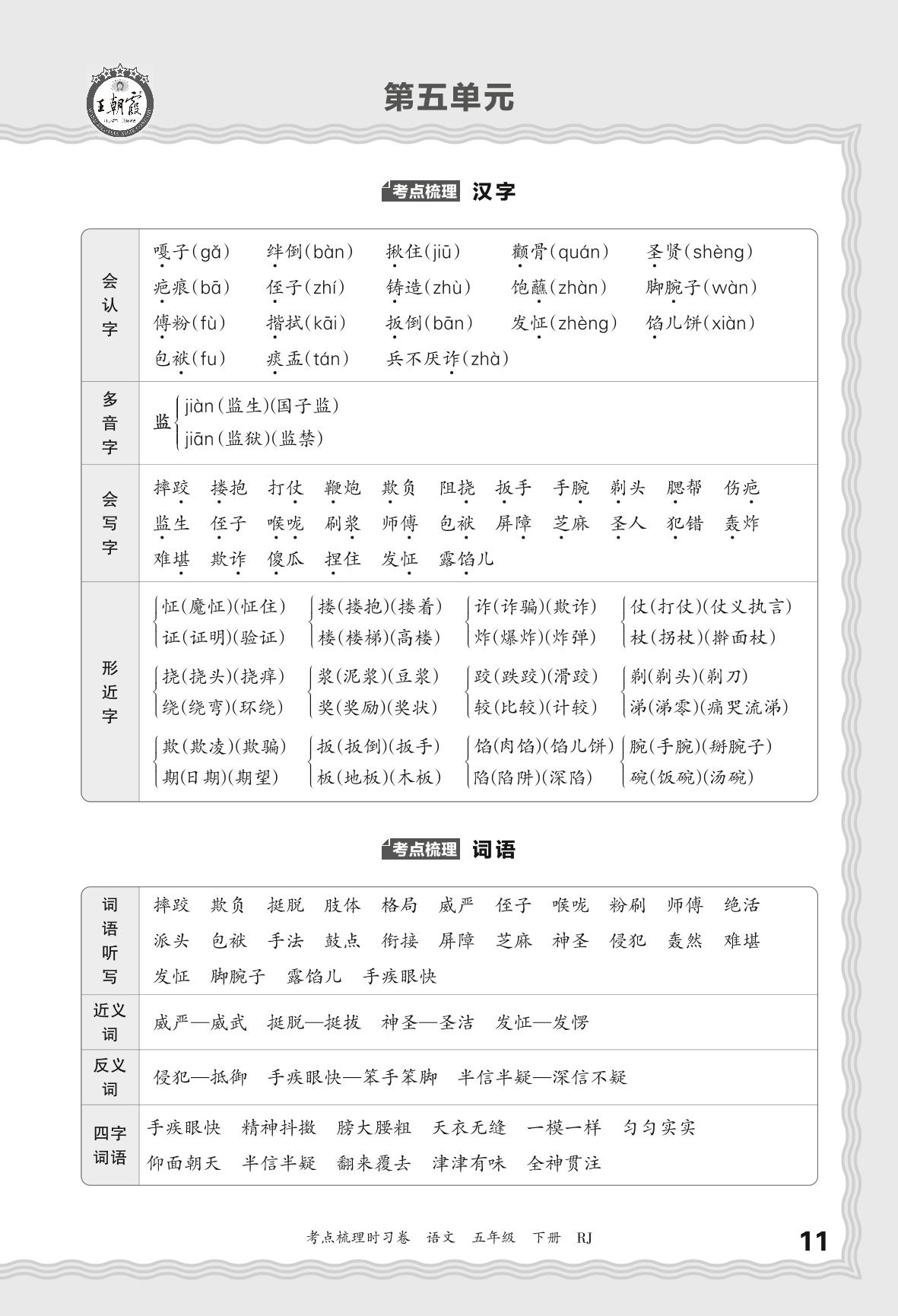 2024春下册五年级语文人教版 考点梳理手册——第五单元