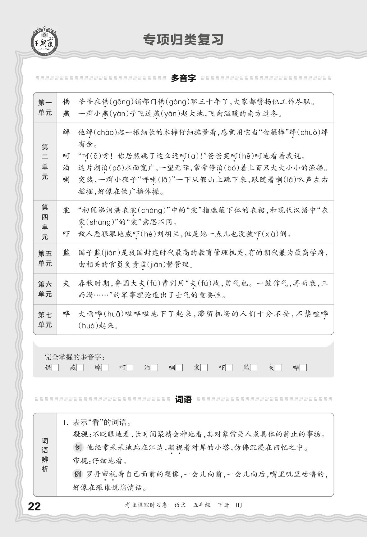 2024春下册五年级语文人教版 考点梳理手册——专项归类复习